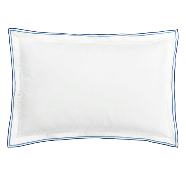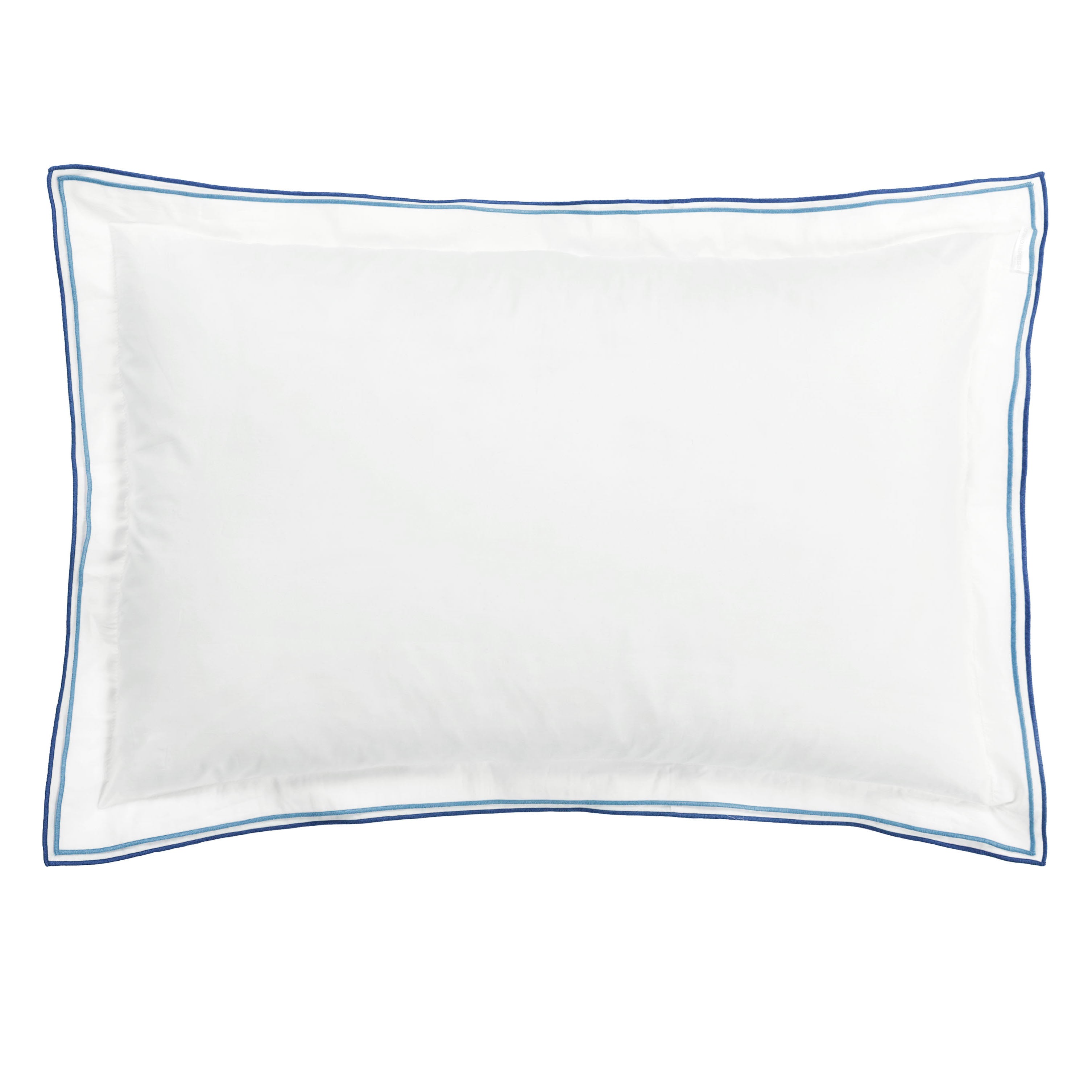 Elevate your bedroom with these Designers Guild Oxford pillowcases, crafted from premium 400 thread count cotton percale that rivals luxury hotel linens. The denim blue fabric showcases refined embroidered detailing in complementary tones along the double-edged borders, creating understated sophistication. Each pillowcase is designed to coordinate seamlessly with matching duvet covers featuring coordinated embroidered frames and edging. The crisp, high-quality percale weave ensures durability and a fresh feel night after night, delivering the polished aesthetic and comfort of a five-star hotel experience in your own home.