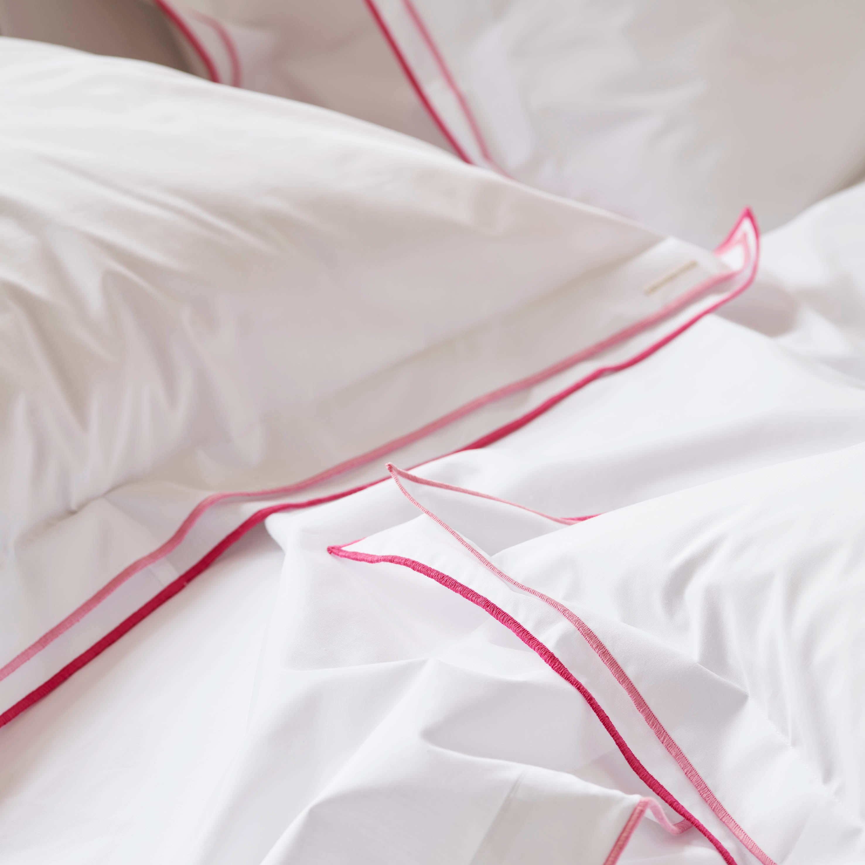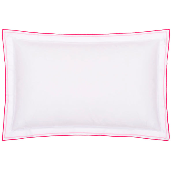 Crafted from premium 400 thread count cotton percale, these Designers Guild Oxford pillowcases deliver the refined comfort found in distinguished hotels. The fuchsia pink fabric is elevated by delicate embroidered accents in complementary tones along the double-edged borders, creating understated elegance. The crisp, high-quality percale weave ensures durability and a luxuriously smooth finish that improves with every wash. Coordinating embroidered detailing throughout the collection allows for a cohesive, curated bedroom aesthetic. An investment in superior bedding that combines timeless design with exceptional craftsmanship.