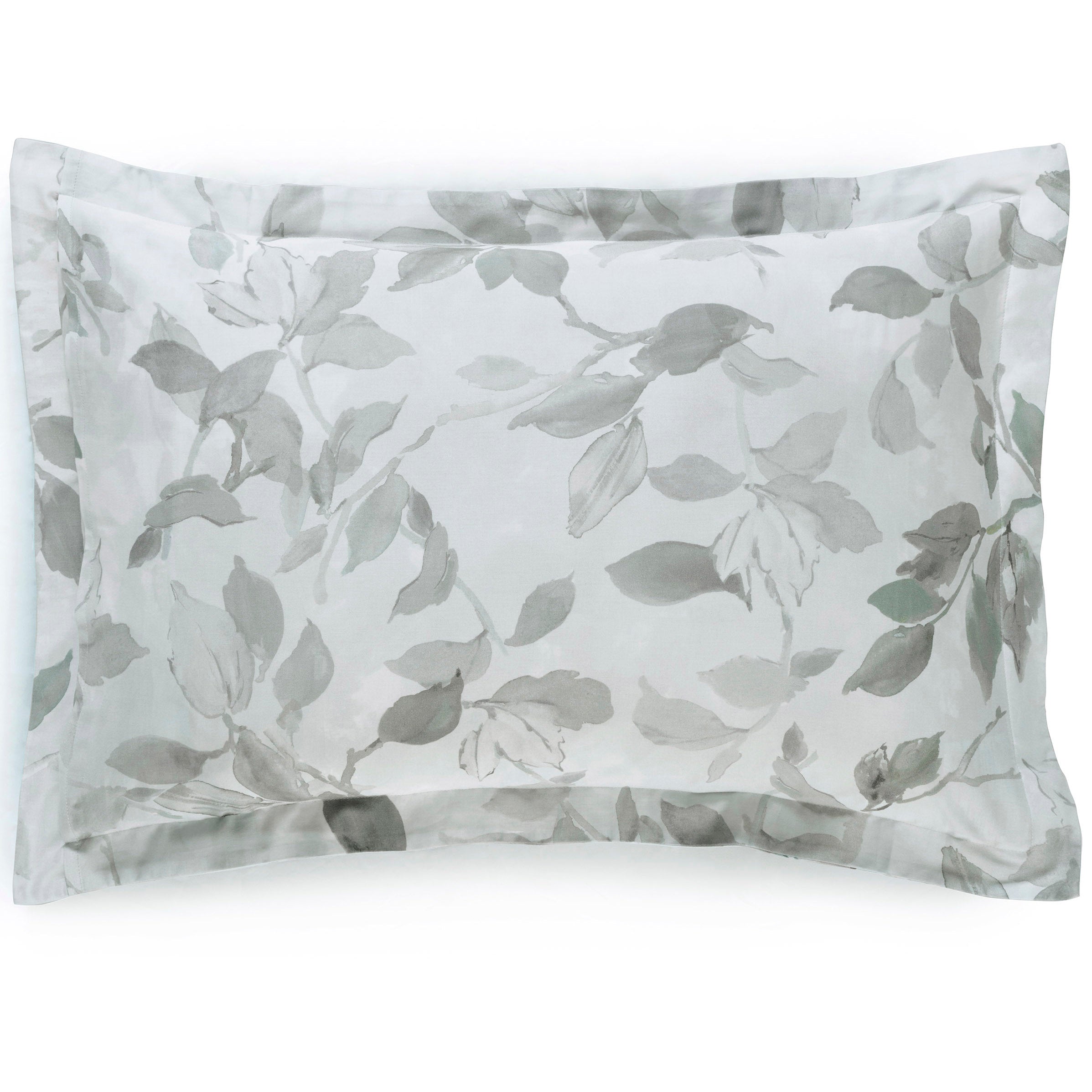 This sophisticated bed linen collection captures cascading white florals and buds in a digitally printed design that evokes quiet romance. Rendered in muted grey and soft blue tones, the composition balances botanical elegance with contemporary restraint. The premium 250 thread count cotton sateen provides a luxurious hand feel, whilst the reverse side reveals a graceful trailing leaf pattern in soft platinum. Each complete set arrives in fabric bag packaging, offering versatile styling with two distinct design options. Crafted to exacting standards in Oeko-Tex® Made in Green certified facilities, this collection merges aesthetic refinement with responsible manufacturing practices.