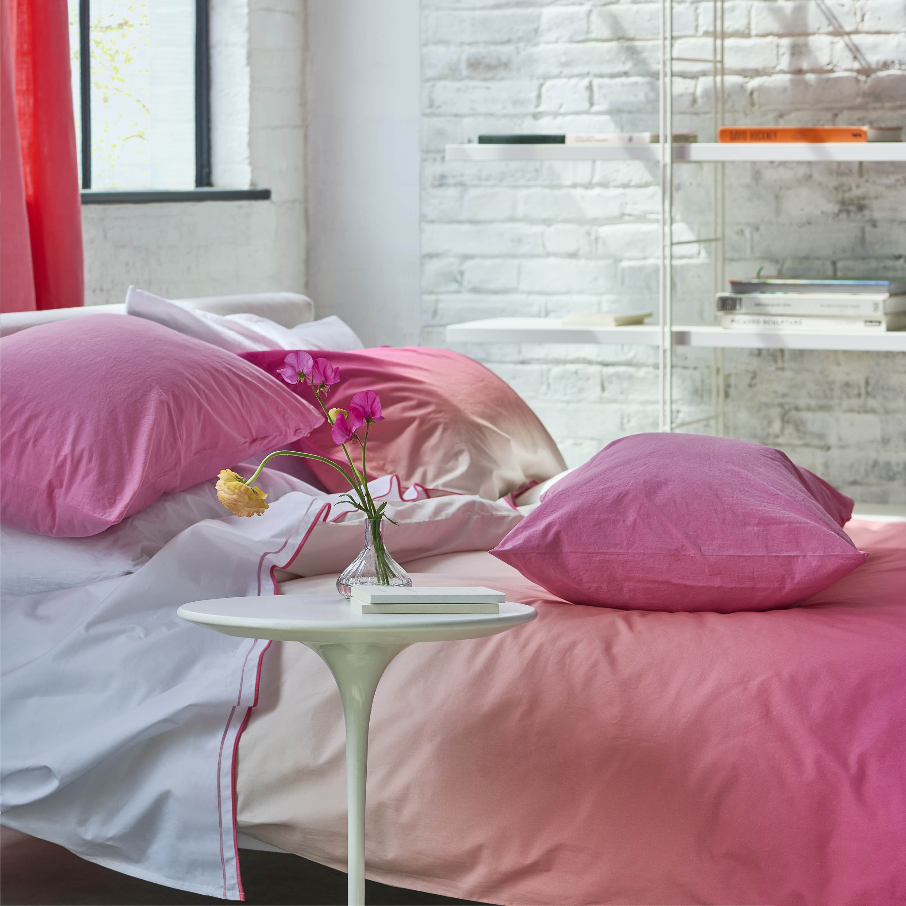 Elevate your sleeping space with the Designers Guild Savoie duvet cover, showcasing an elegant colour progression from vibrant fuchsia pink to soft white. Woven from high-quality 200 thread count cotton percale, this bedlinen combines a luxuriously crisp texture with exceptional longevity. The sophisticated ombre design creates an impactful focal point in any bedroom, whilst the natural breathability of the percale weave guarantees superior comfort and performance through repeated laundering.