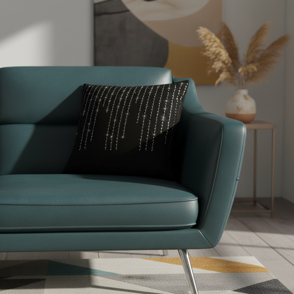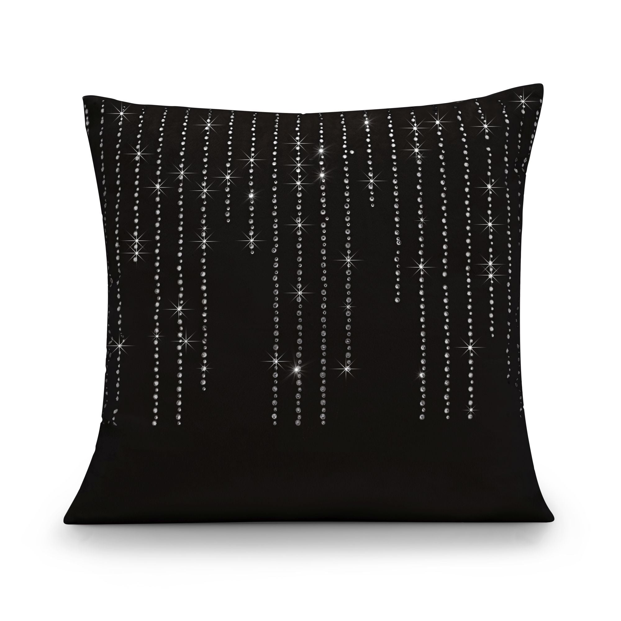 This sophisticated cushion features luxurious blackout velvet adorned with an elegant diamante cascade design. Measuring 45cm x 45cm, it combines sumptuous texture with eye-catching embellishment, making it an ideal choice for adding refined glamour to any interior scheme. The generous fill ensures optimal comfort and shape retention.