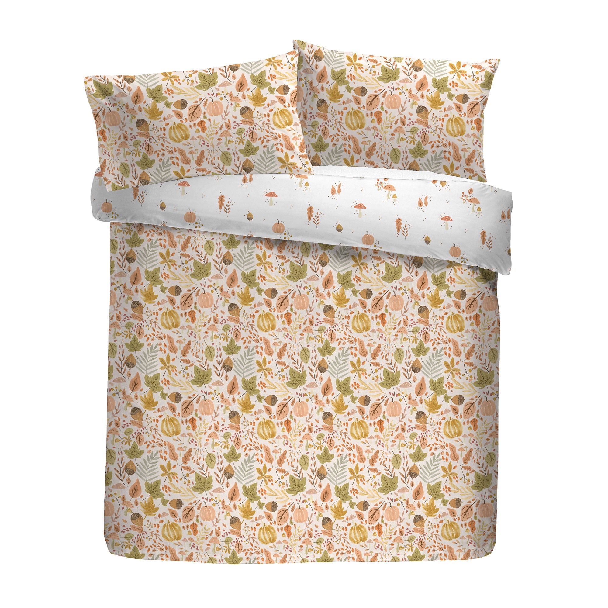 Experience the refined charm of the D&D Autumn Foliage Duvet Cover Set. Featuring a stylish autumnal watercolour design with leaves and pumpkins on a natural background, complemented by a white reverse adorned with watercolour leaves. Made from soft polycotton, this reversible bedding set brings enduring sophistication ideal for a distinguished living space.