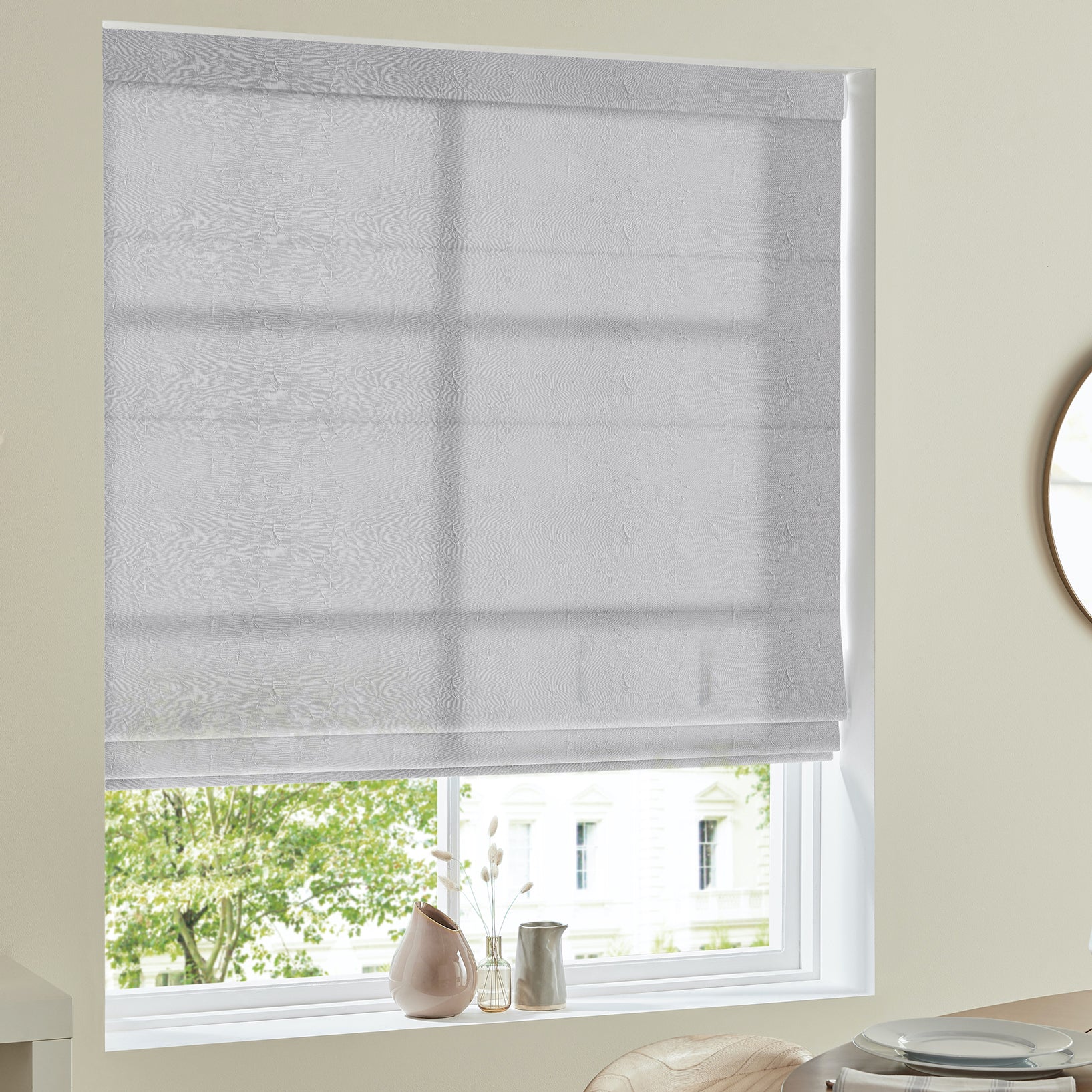 This made to order roman blind come’s unlined to enhance the nature of the sheer material.