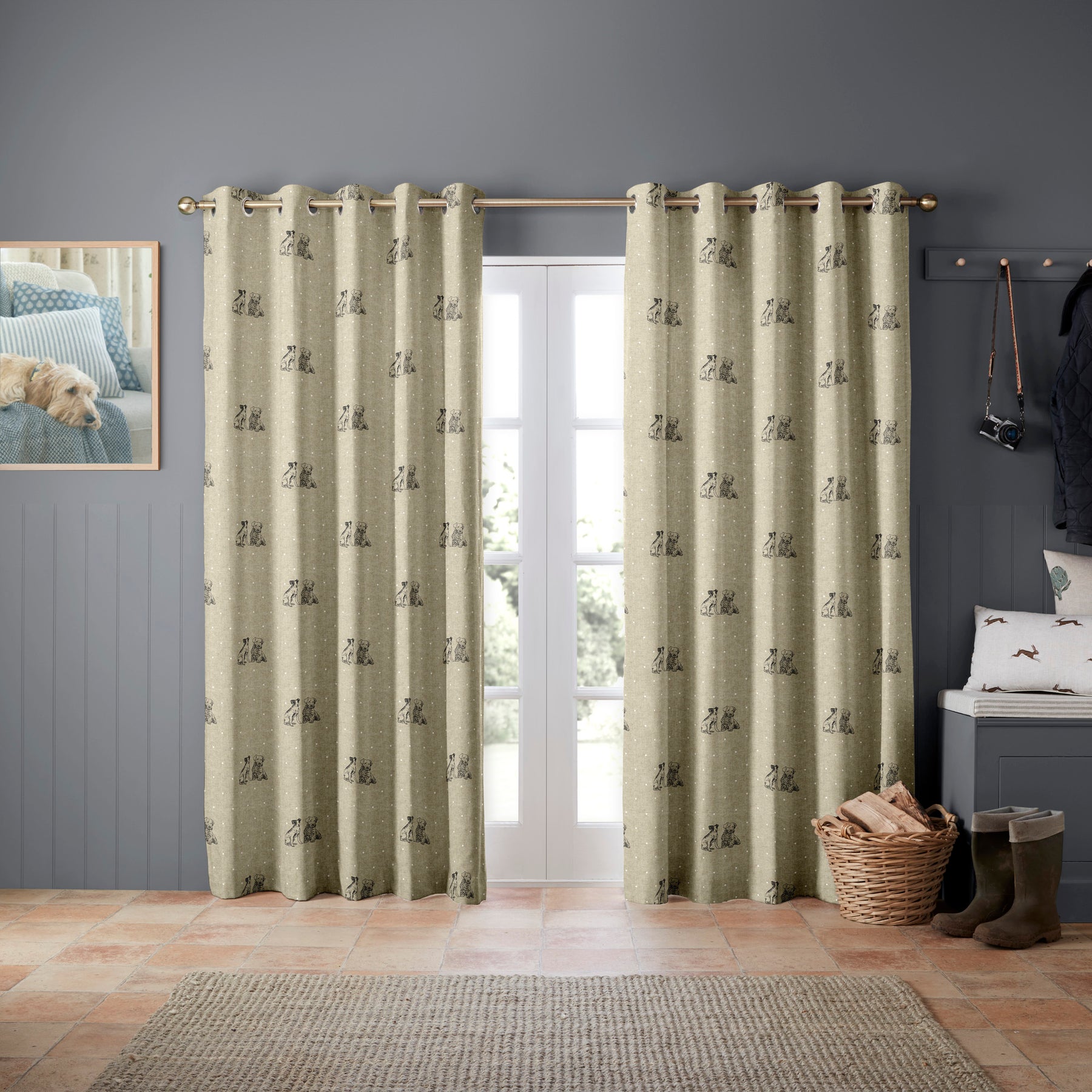 • Grey curtains