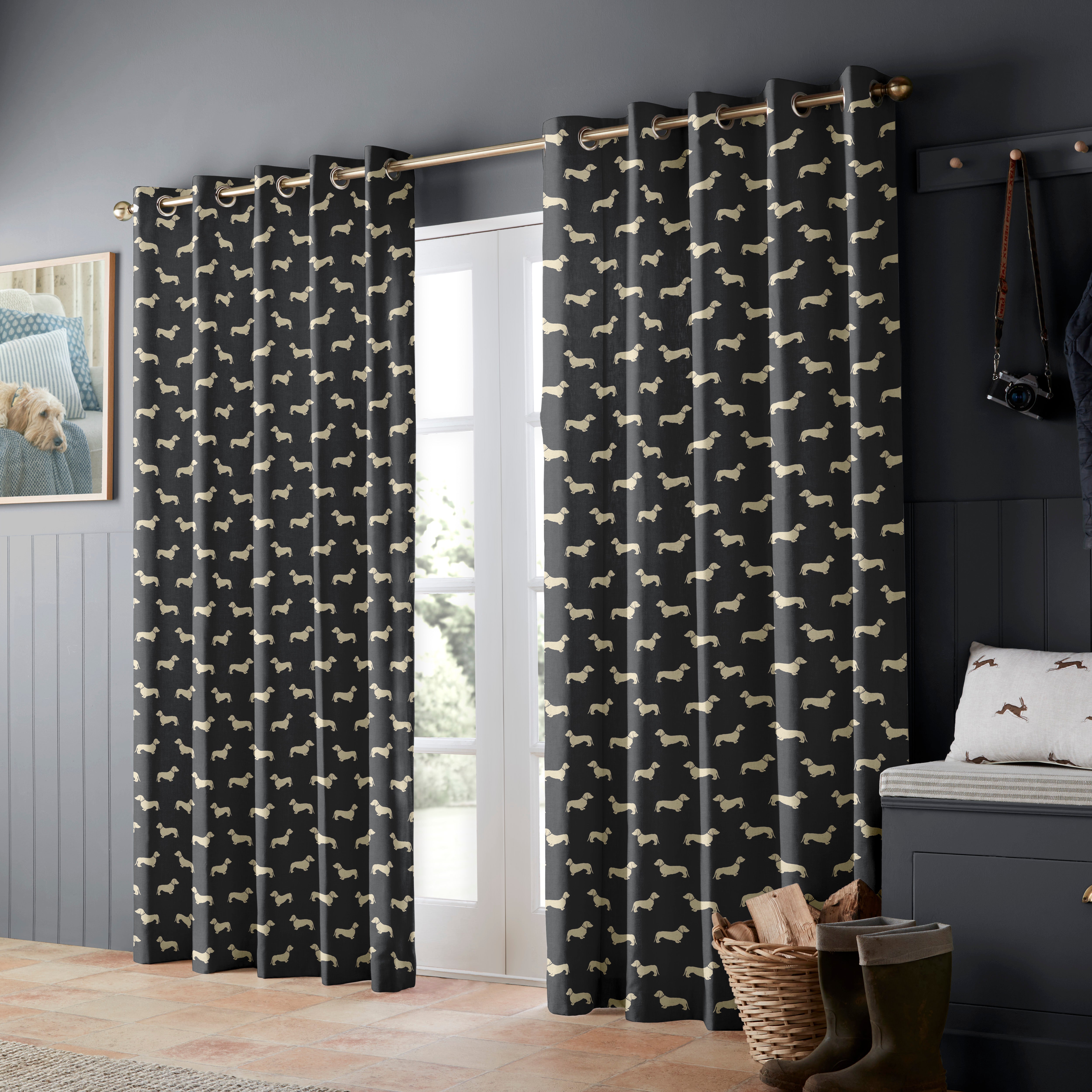 • Grey curtains