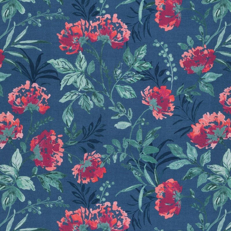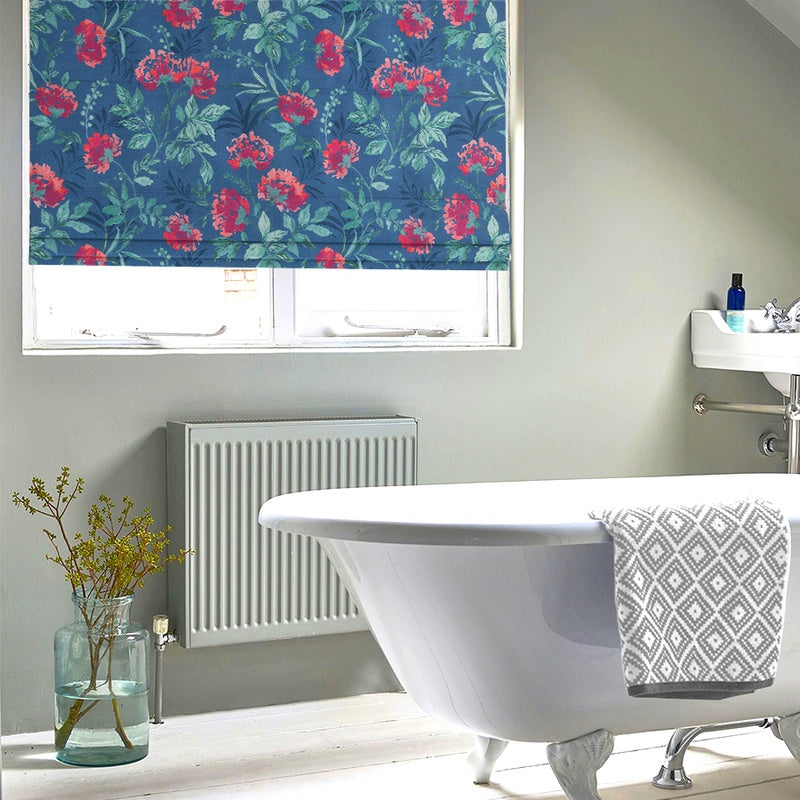 Vibrant and impactful, the Flora roman blind in berry combines a traditional floral print with on trend colours to modernise your window. The bold floral print with deep blue ground and bright berry flowers will bring colour to your room and admiration from all who visit. Also available in made to measure curtains, we recommend ordering a sample to test out in your home