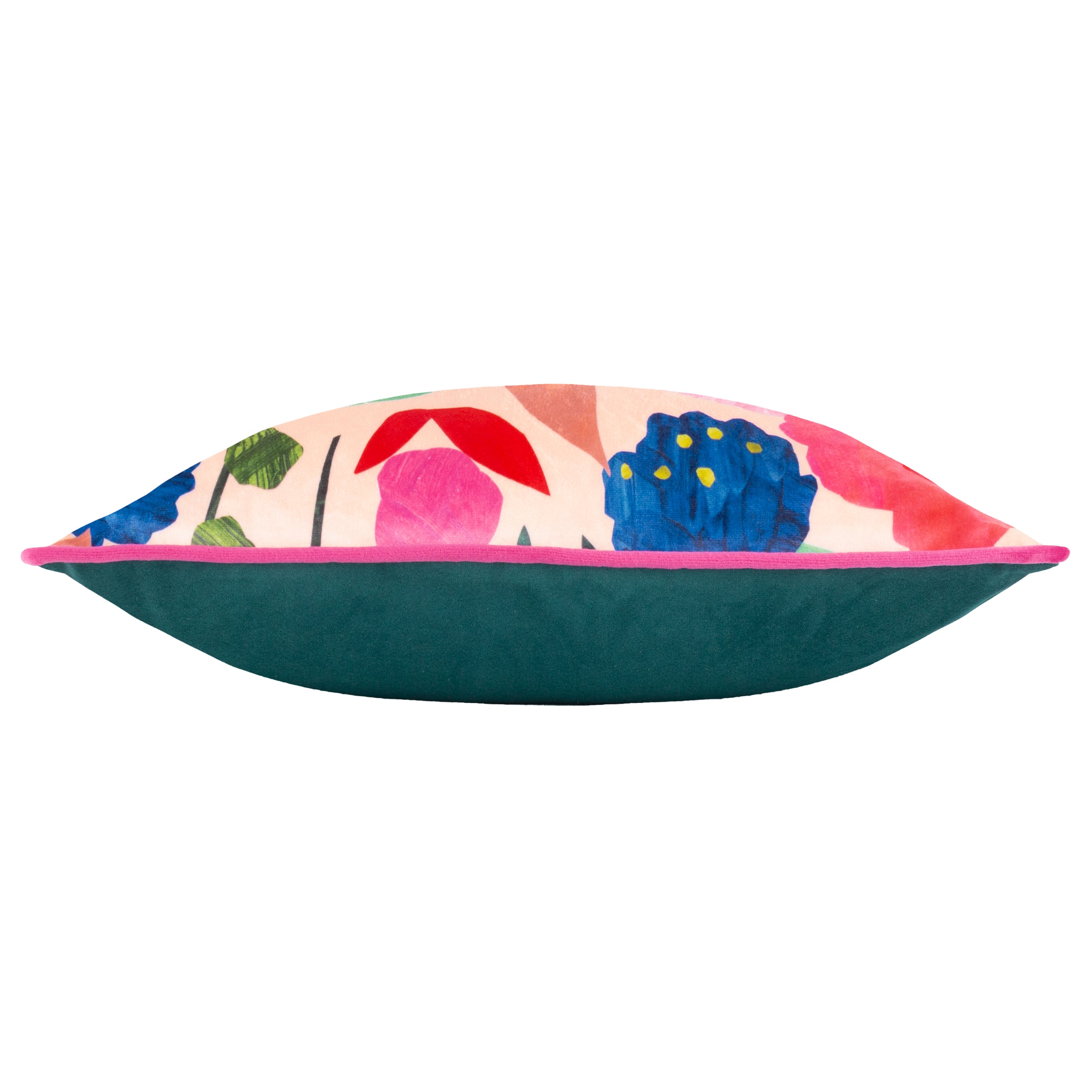 Add some colour to your sofa with this beautifully designed cushion, with a spectrum of vibrant blooms placed on a crisp white background. Printed on premium , rich richness velvet for enhanced luxury and finished with a contrast woven piped trim.