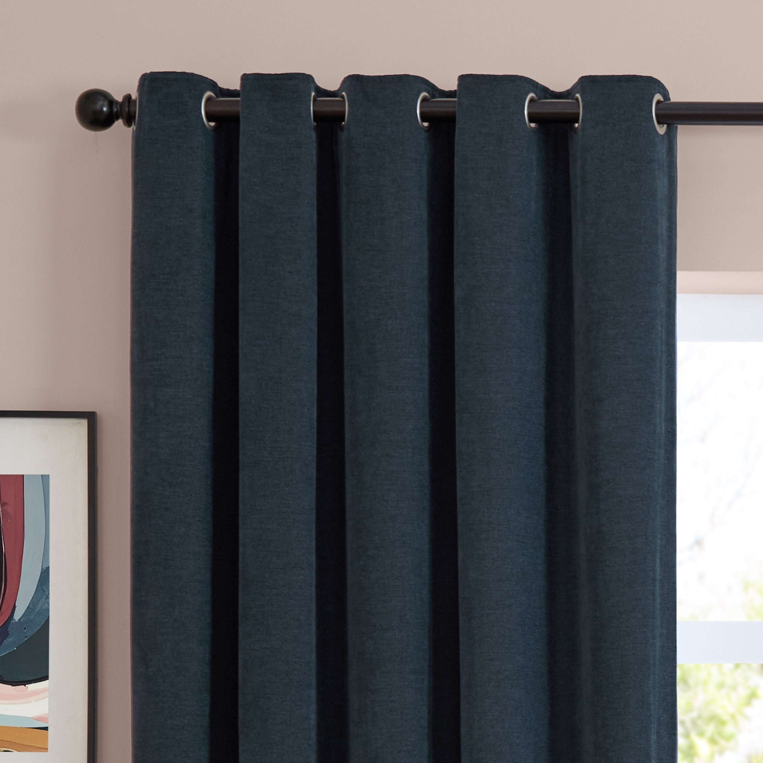Transform your space with these Soft Chenille Ready Made Eyelet Blackout Curtains in Navy. Constructed from luxuriously tactile matte chenille, they deliver sophisticated comfort whilst maintaining a refined aesthetic. The blackout fabric provides effective light control and privacy, ideal for bedrooms and living spaces requiring a serene environment. Their elegant drape and durable construction ensure these curtains remain a stylish investment for years to come. Pre-made with eyelets for effortless installation and versatile styling across any interior scheme.