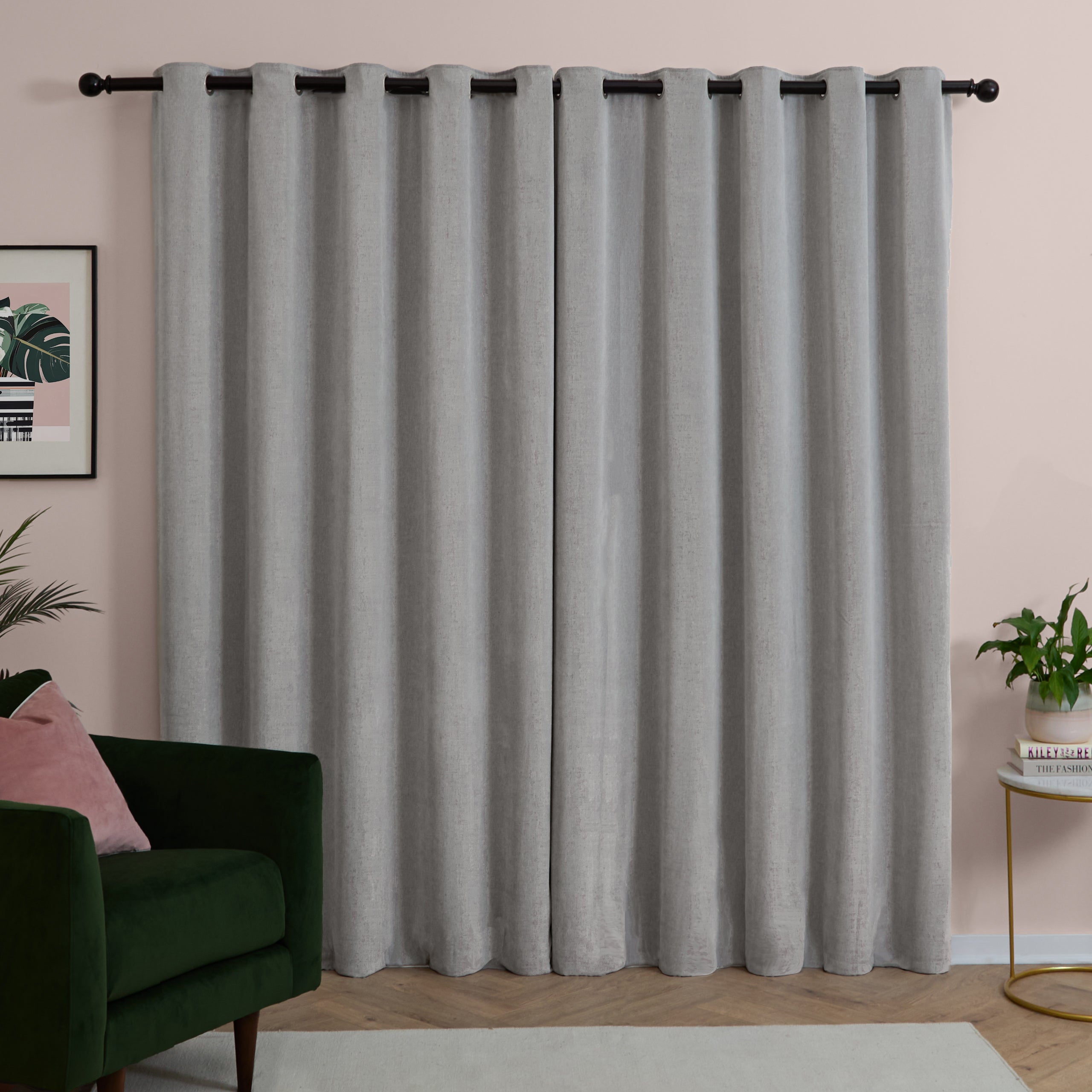 Transform your space with these Soft Chenille Ready Made Eyelet Blackout Curtains in Silver. Constructed from luxuriously tactile matte chenille, they deliver sophisticated comfort whilst maintaining an effortlessly elegant aesthetic. The blackout fabric provides effective light control and privacy, establishing a serene environment ideal for bedrooms and living spaces. Their superior drape and durable construction ensure a refined appearance that withstands daily use. Pre-fitted eyelets offer straightforward installation, allowing you to achieve a polished, contemporary look without compromise. Perfect for those seeking both tactile indulgence and practical performance in their window dressing.
