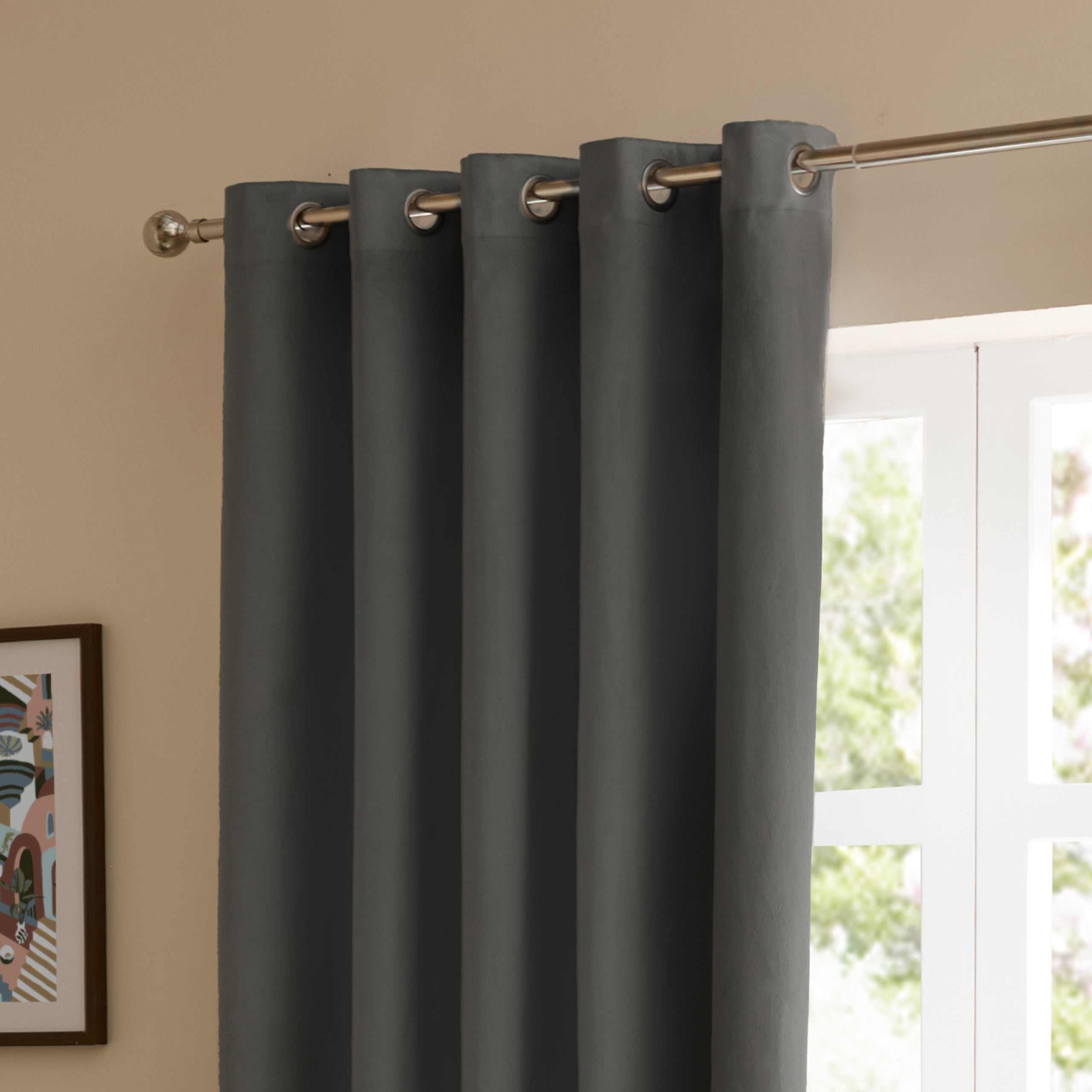 Transform your space with these sophisticated charcoal velvet curtains, engineered for both aesthetic impact and practical performance. The luxurious matte finish creates visual depth, whilst the room-darkening lining effectively blocks unwanted light and strengthens privacy. Crafted from resilient velvet fabric, these ready-made eyelet curtains deliver a contemporary elegance that complements any interior scheme. The fluid drape and tactile texture add dimensional interest to your windows, allowing your décor's other elements to take centre stage. A versatile investment piece that balances style with enduring functionality.