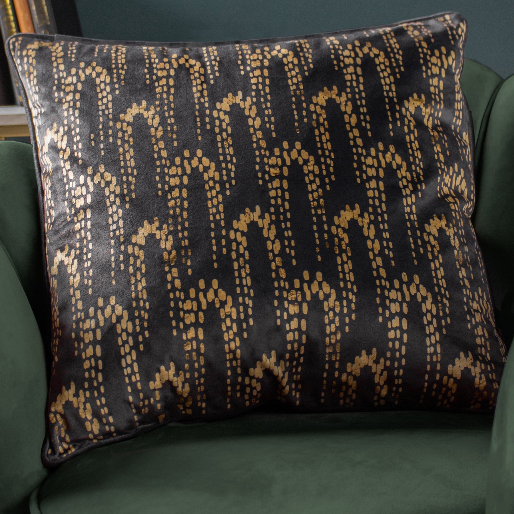 Enhance any room with our Wisteria Velvet 50cm x 50cm Filled Cushion in Charcoal, featuring a stylish geometric print in rich shades. The cushion boasts a soft velvet feel and a plain coordinating reverse, perfect for complementing a variety of textures and tones.