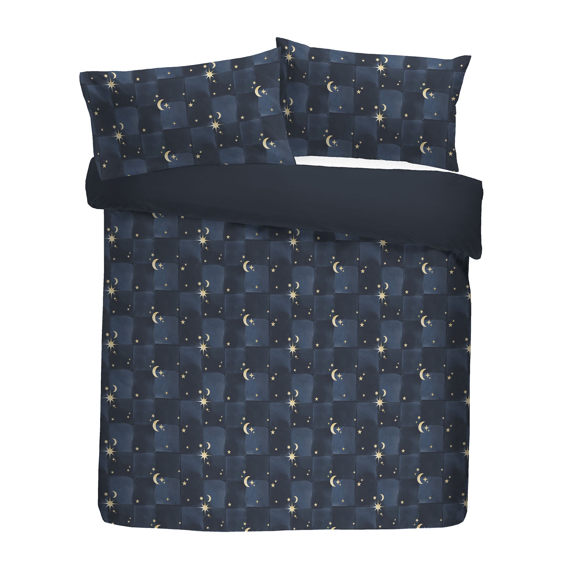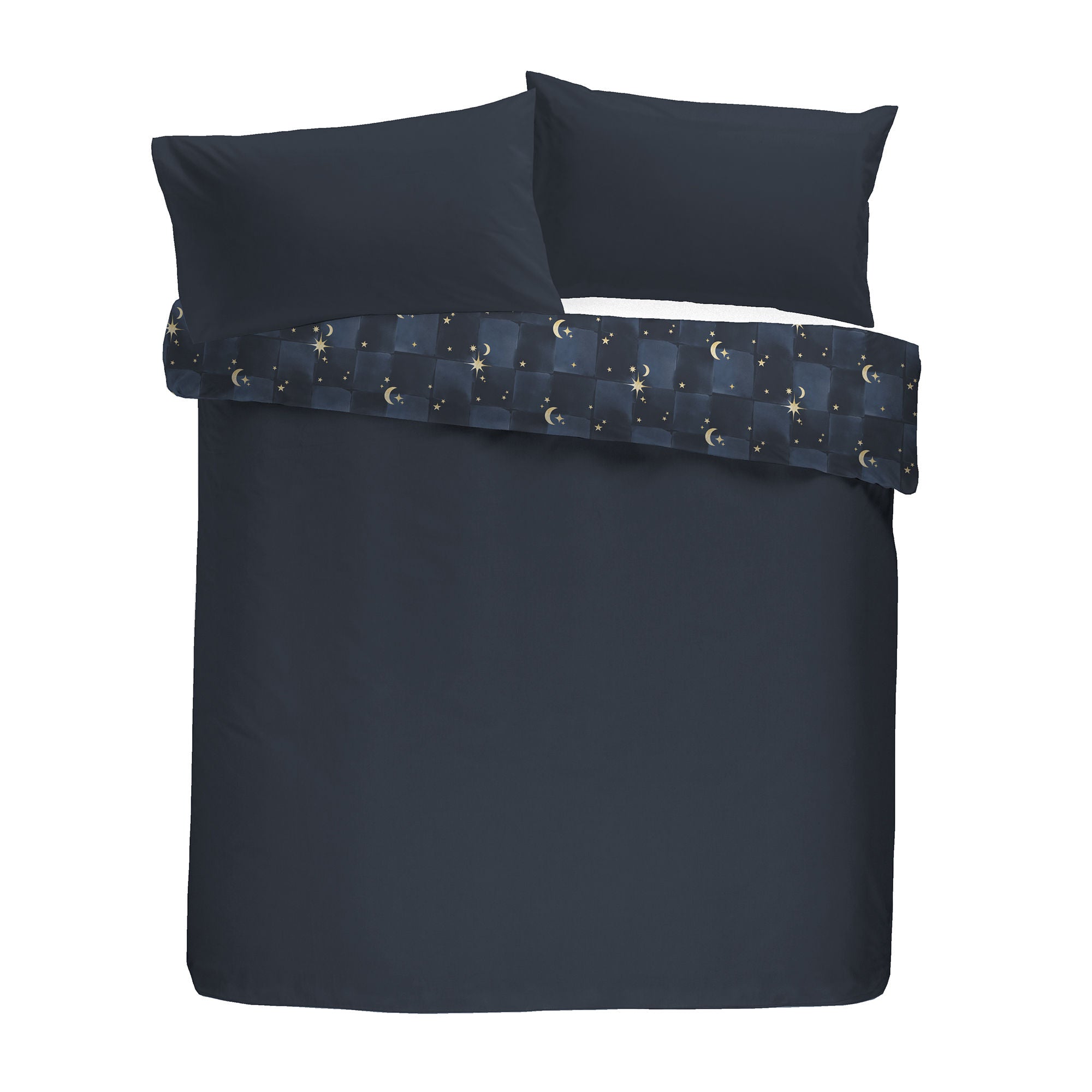 Experience serene comfort with the Fusion Cosmic Star Duvet Cover Set. Crafted from soft, warm fleece featuring a celestial moon and star design, it offers a sumptuous sleeping environment. The reverse side, lined with plain sherpa, adds extra cosiness, making your bed a luxurious retreat for restful nights.