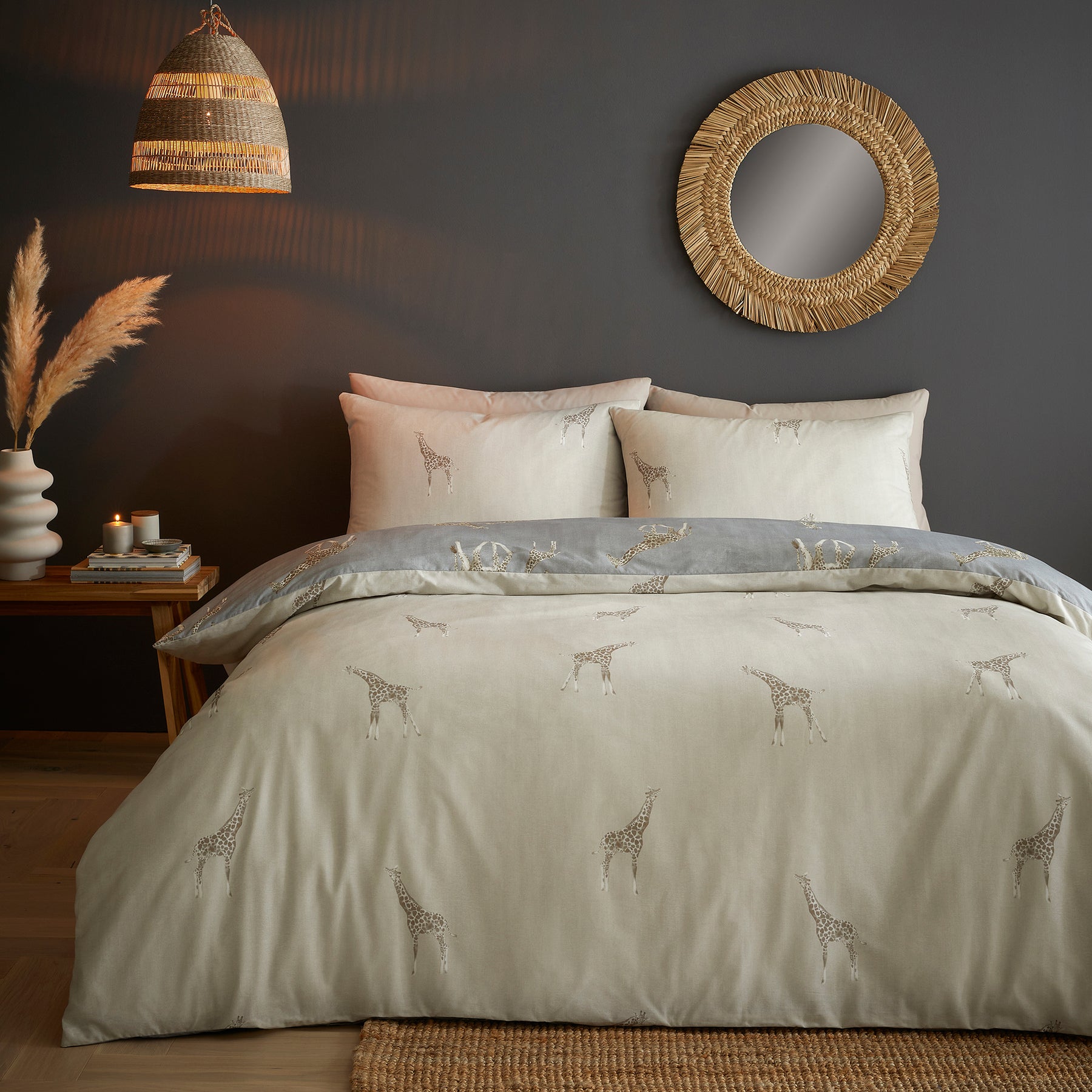 Elevate your bedroom decor with this stylish and playful Fusion Milo Reversible Duvet Cover Bedding Set Grey. Made from easy-care poly cotton, this set features Milo the giraffe and friends in a fun printed design. Best of all, it's completely reversible for double the style options.
