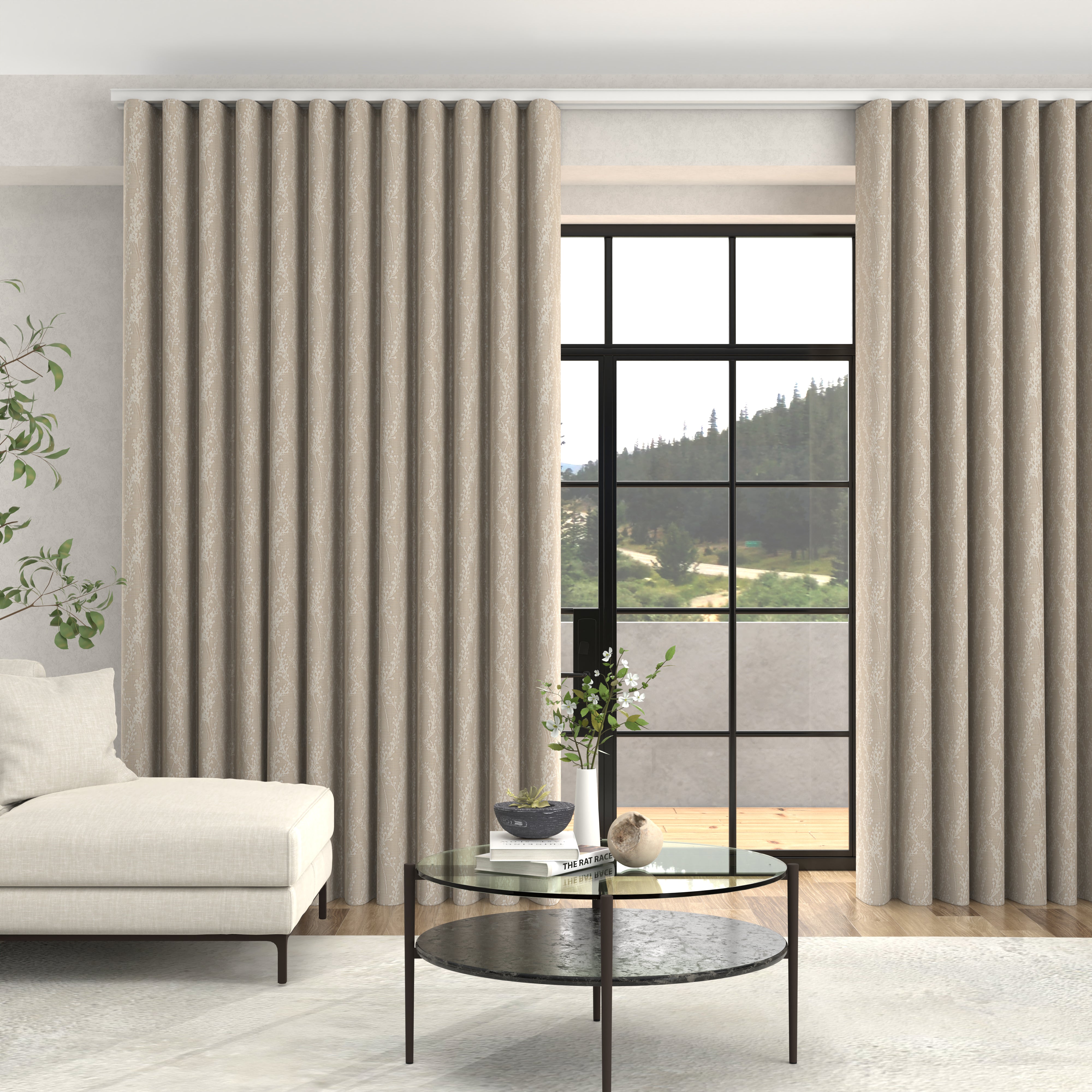 Featuring an intricately woven floral jacquard pattern, these Grace curtains bring refined elegance to any interior space. The sophisticated Wave heading delivers a modern aesthetic with reduced fabric volume, creating a streamlined eyelet-style appearance that effortlessly folds back when opened. The linen composition enhances the curtains' premium quality and visual appeal.