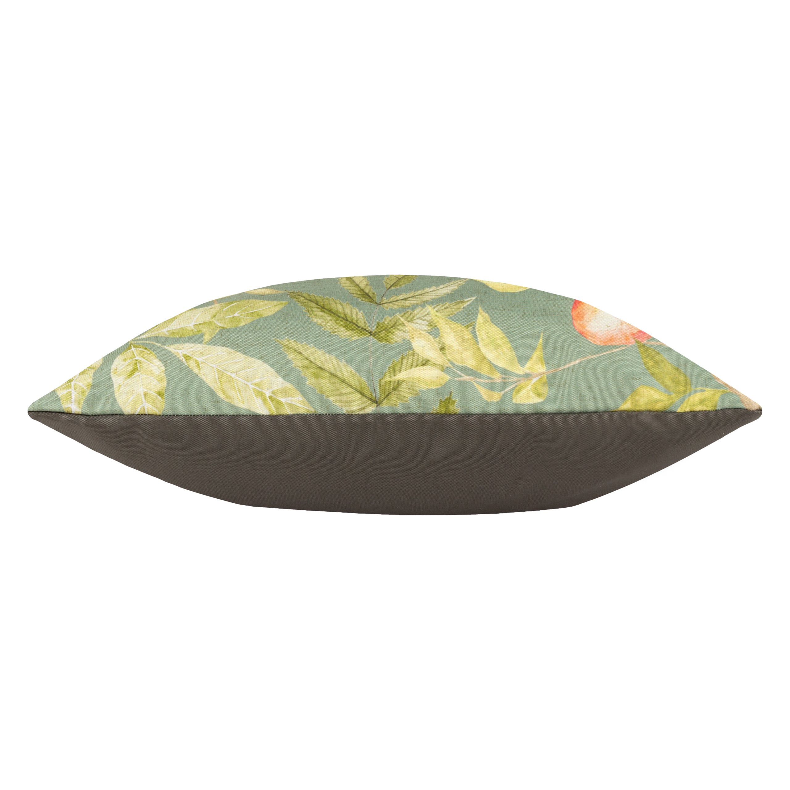 A charming, unique cushion showcasing a Highland Cow with wide eyes who has wandered into the nearby orchard to enjoy the tempting, refreshing fruit growing there. Printed on UV, water resistant polyester fabric with a fresh, summery olive green background, this beautifully designed cushion brings a touch of nature to your outdoor area.