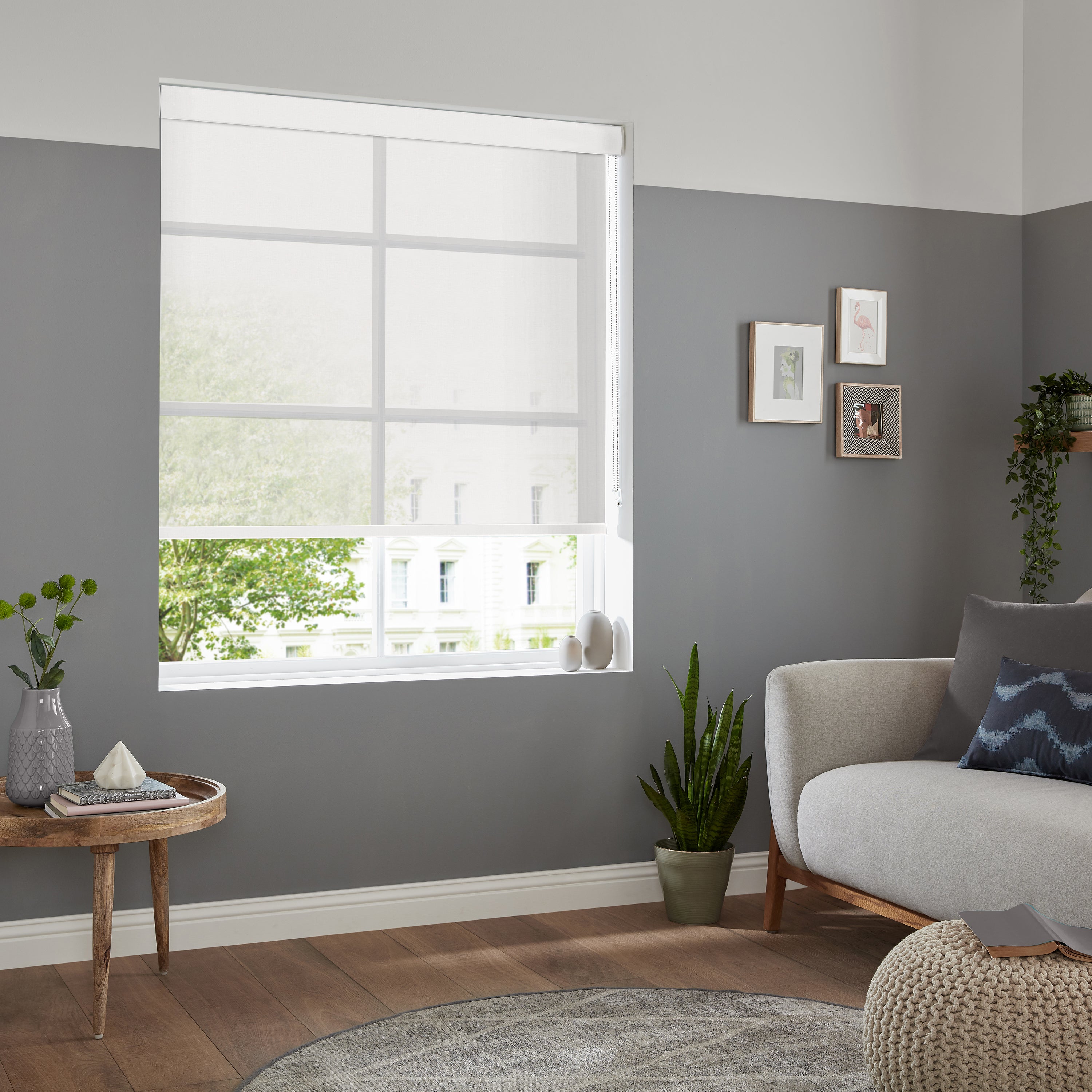 The Halo sheer made-to-measure roller blind is shown here; with an open weave texture, it has a more natural appearance at the window while still giving seclusion during the day and light diffusion. Ideal for enhancing seclusion in your preferred window while yet letting light to enter the house.