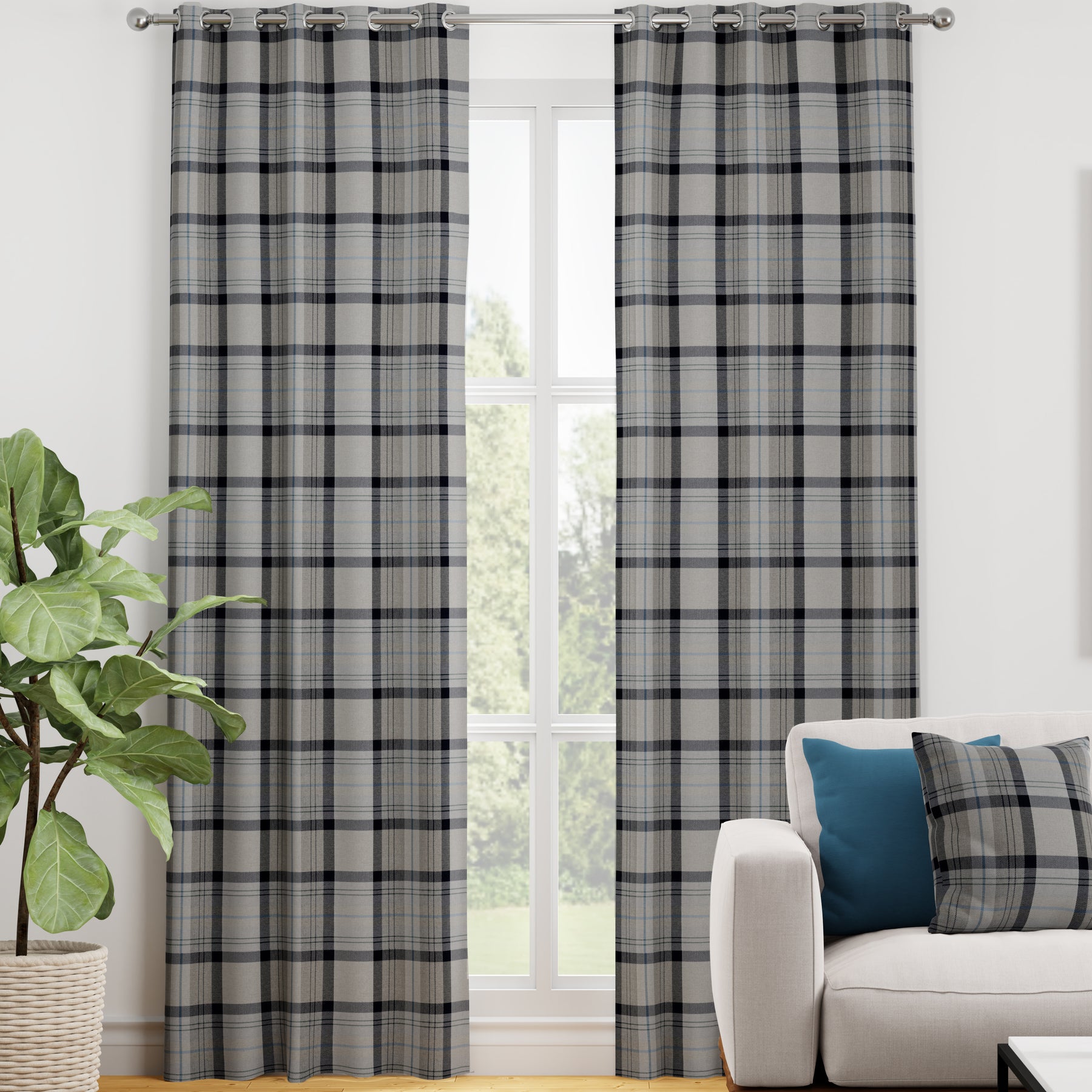 This chic checked material will add a modern touch to any home's main windows. Its moody yet inviting 100% polyester fabric is essential for creating a cosy atmosphere.