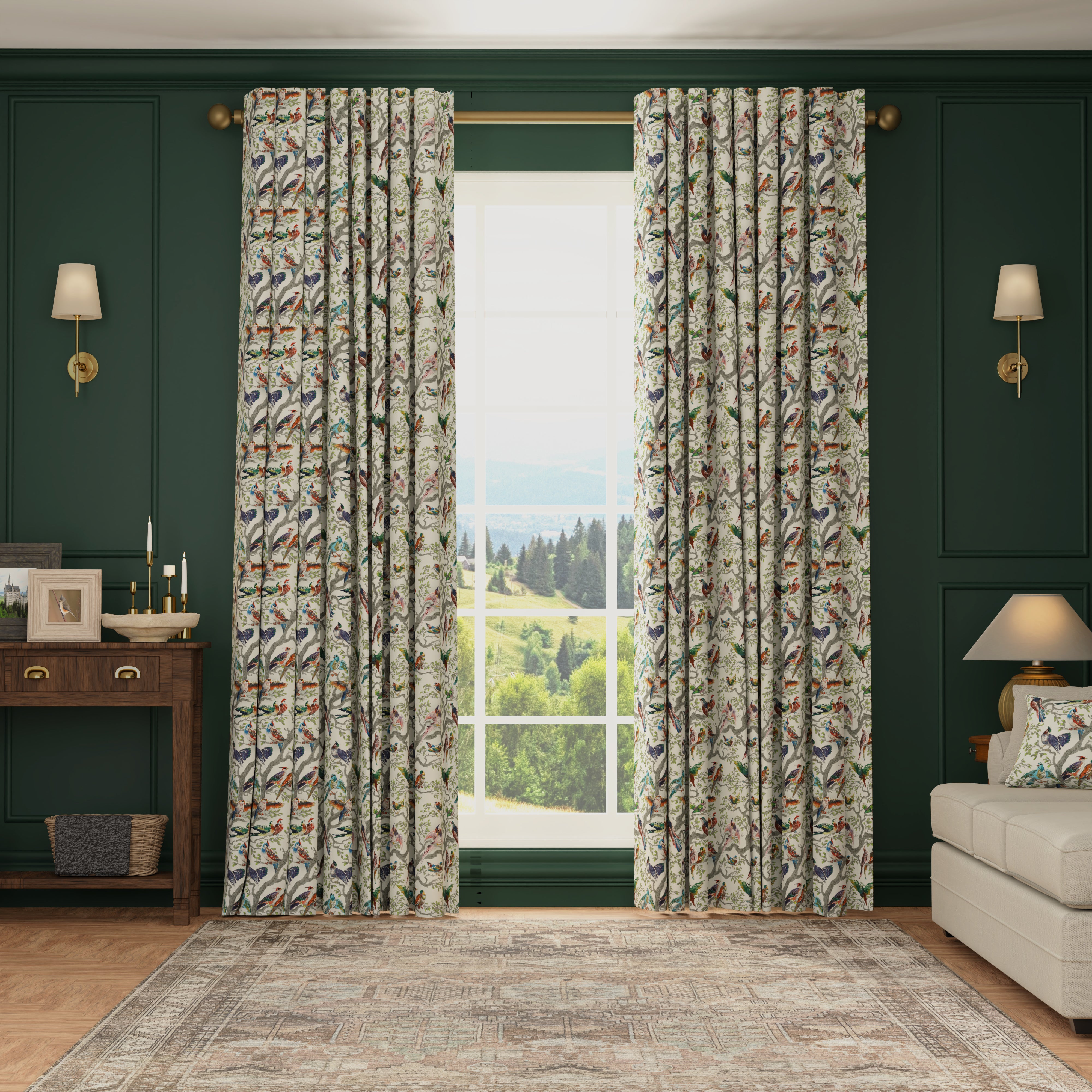This pair of made-to-measure curtains from the House Llewelyn-Bowen Birdity Absurdity collection combines expert craftsmanship with distinctive design. Crafted from 100% cotton, these curtains feature a striking bird print rendered in vibrant rainbow tones against a subtle, tonal white background, offering a fresh yet elegant aesthetic. Tailored to your exact window dimensions, they ensure a perfect fit and drape, enhancing both function and style in your living space. Their natural fabric promotes breathability and durability, making them a refined choice for those seeking to blend artistry with practicality in home décor.