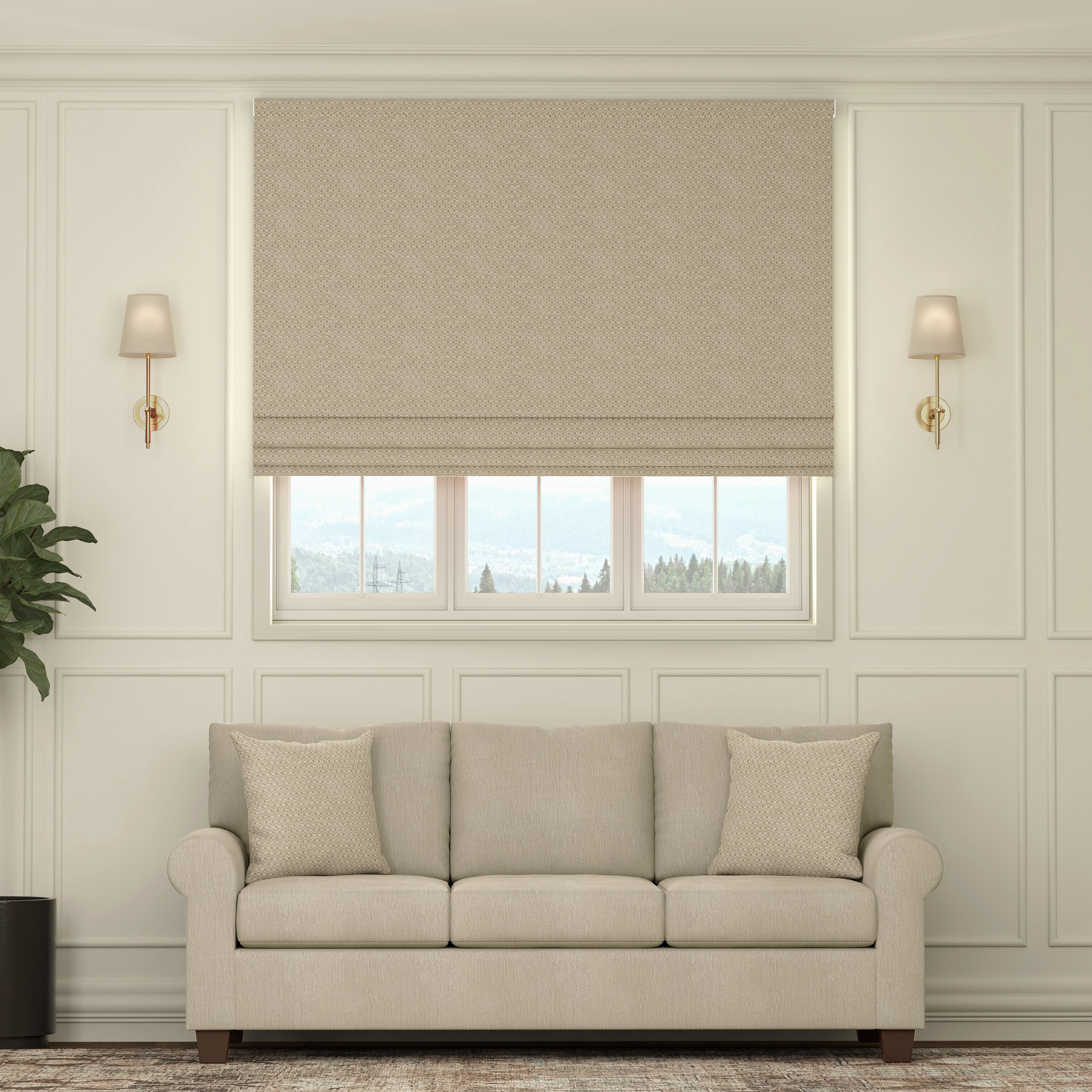 The HOUSE Llewelyn-Bowen Divina Made To Measure Roman Blind in Cotswold Stone offers a bespoke window dressing solution tailored to your exact dimensions. Featuring a luxurious raised abstract chenille pattern, this blind brings a tactile richness and depth to your interior space. The woven design showcases a sophisticated blend of textures in timeless neutral tones, making it a versatile addition to various décor styles. Ideal for adding subtle elegance and texture, it combines aesthetic appeal with practical functionality, enhancing light control and privacy while complementing your room’s ambiance with lasting quality and style.