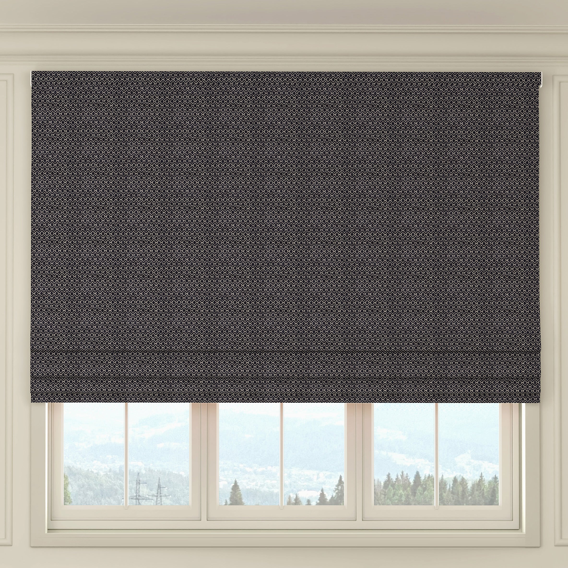 This made-to-measure Roman blind from the House Llewelyn-Bowen Divina collection combines expert craftsmanship with elegant design. Featuring a luxurious raised abstract chenille pattern, the fabric offers both texture and visual depth, enhancing any room with sophistication. Woven in a range of timeless shades, this version showcases deep midnight blue tones—rich and moody—that complement various interiors. Its precise tailoring ensures a perfect fit for your window, delivering both style and functionality while controlling light and privacy with ease. Ideal for those seeking refined elegance and quality in their window treatments.