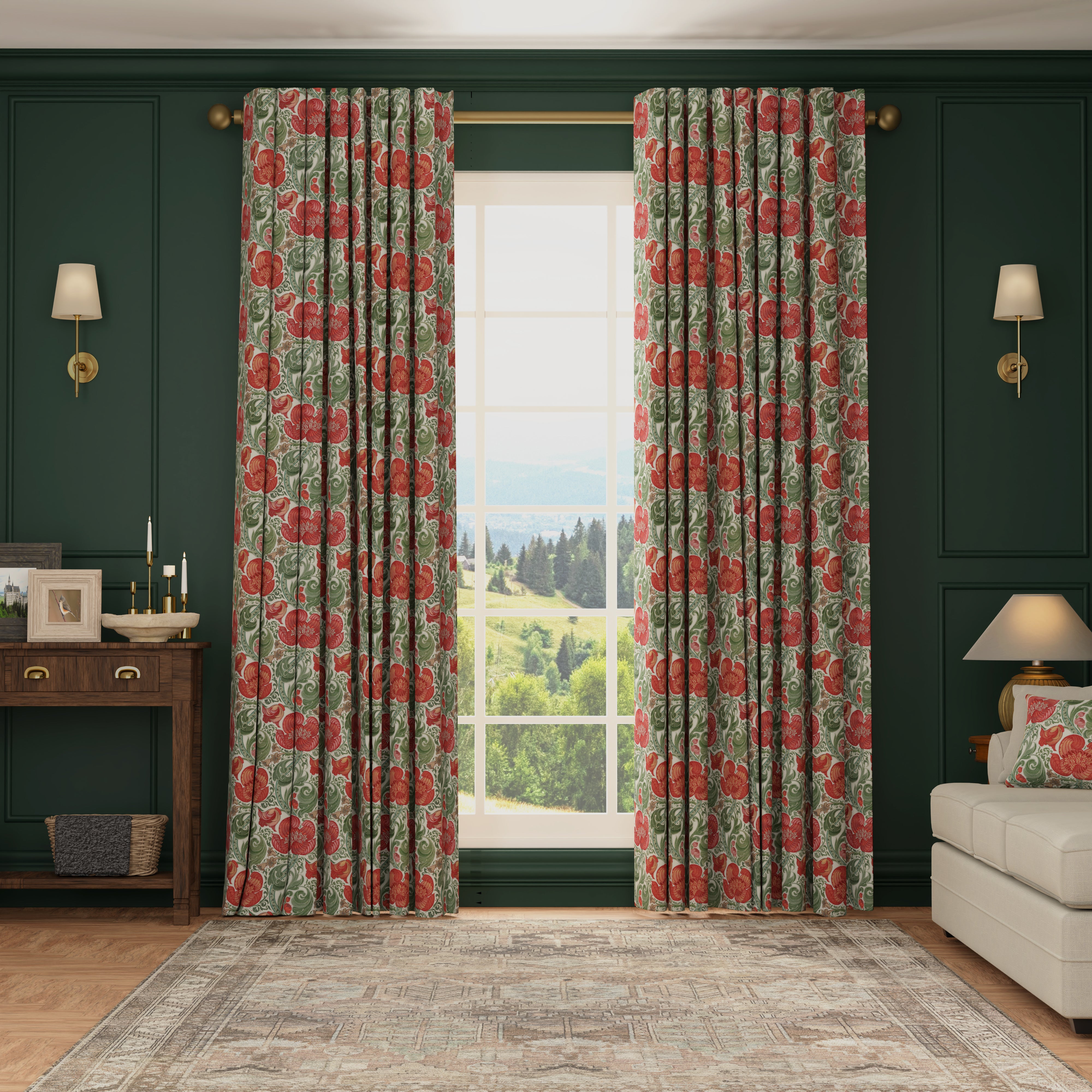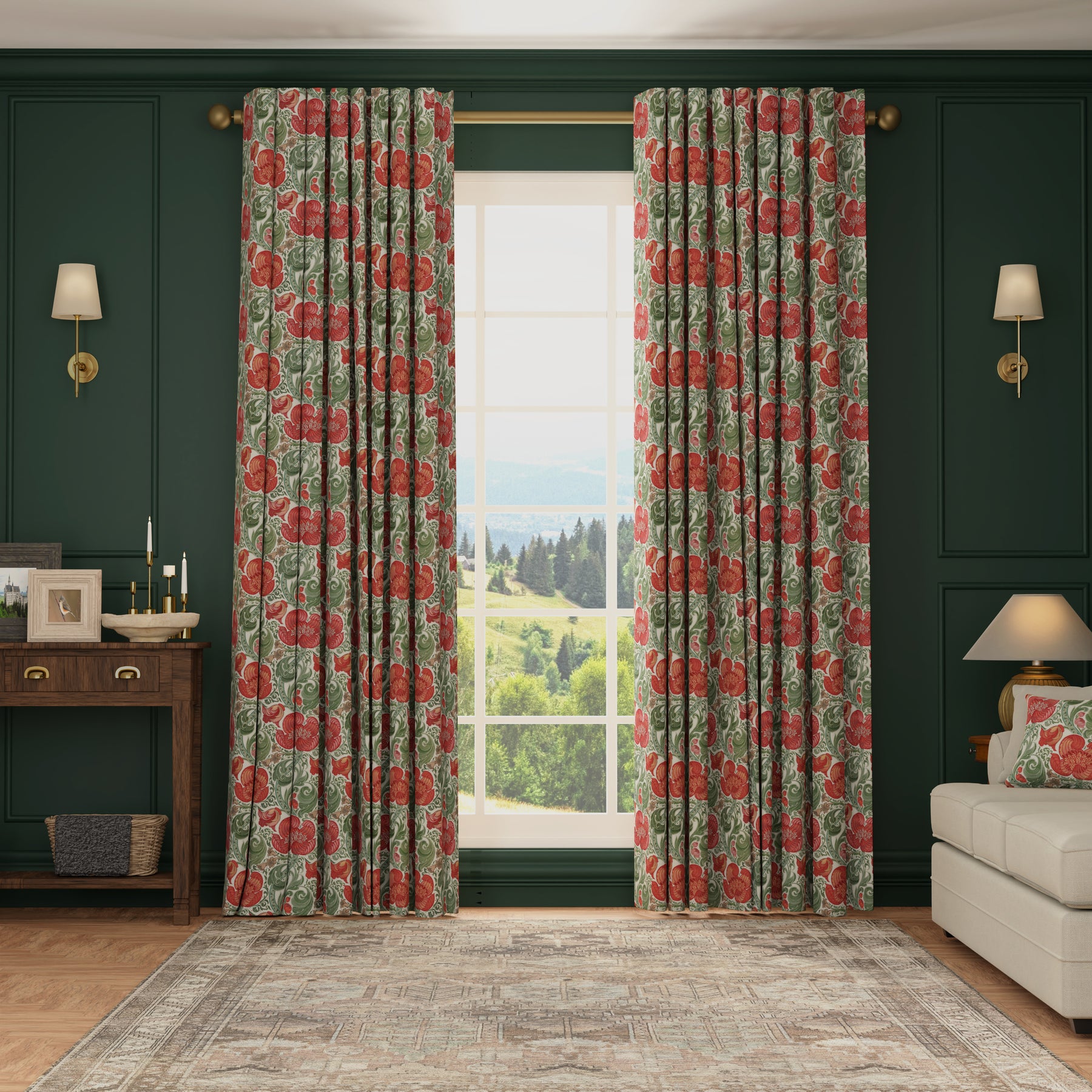 This pair of made-to-measure curtains from the HOUSE Llewelyn-Bowen collection combines timeless craftsmanship with luxurious materials. Crafted from rich crimson printed velvet, they feature a striking scrolling floral design that adds depth and character to any room. The velvet’s soft texture enhances insulation and light control, making these curtains both elegant and functional. Custom tailored to your window dimensions, they ensure a perfect fit and a polished finish, elevating your interior décor with a sophisticated and bespoke statement.