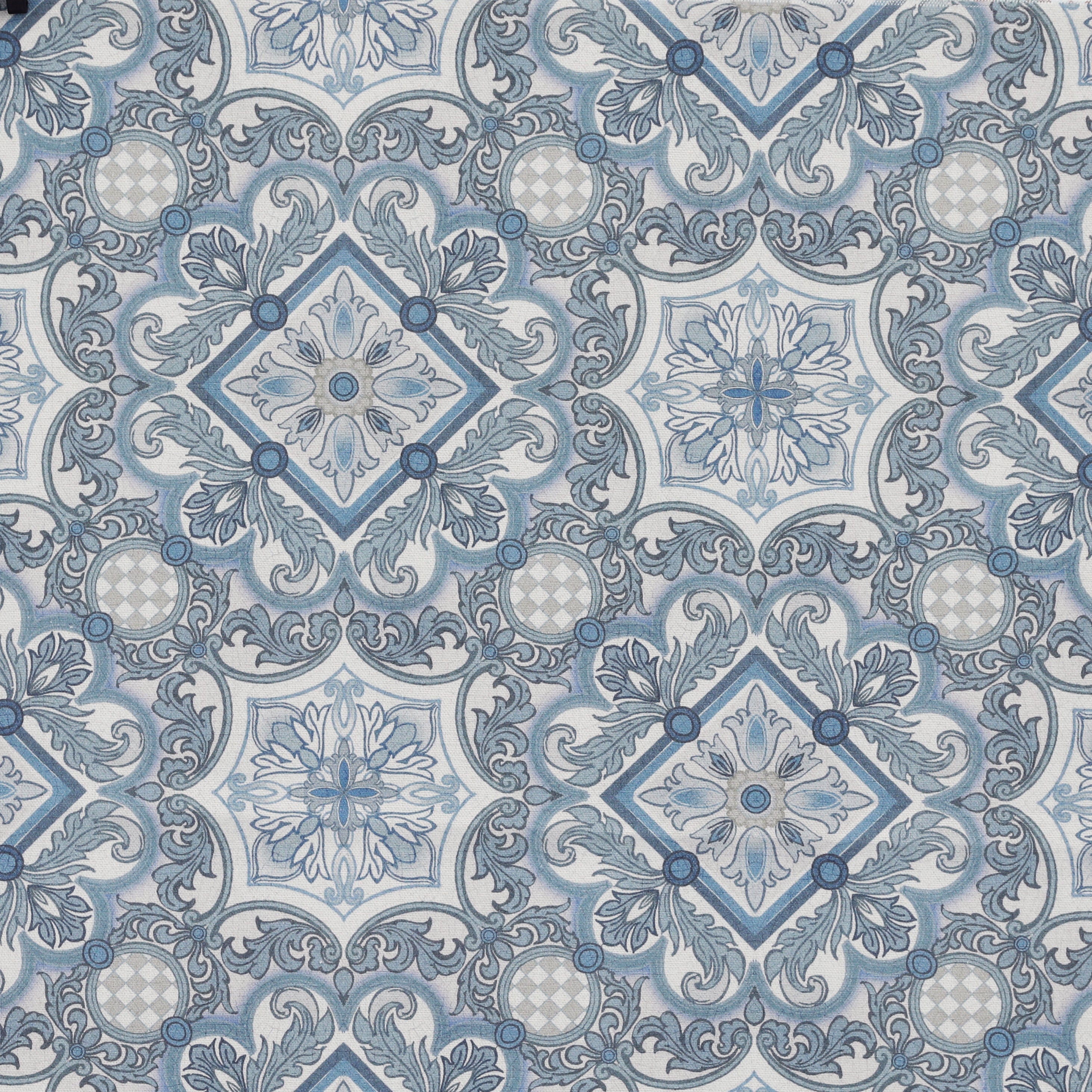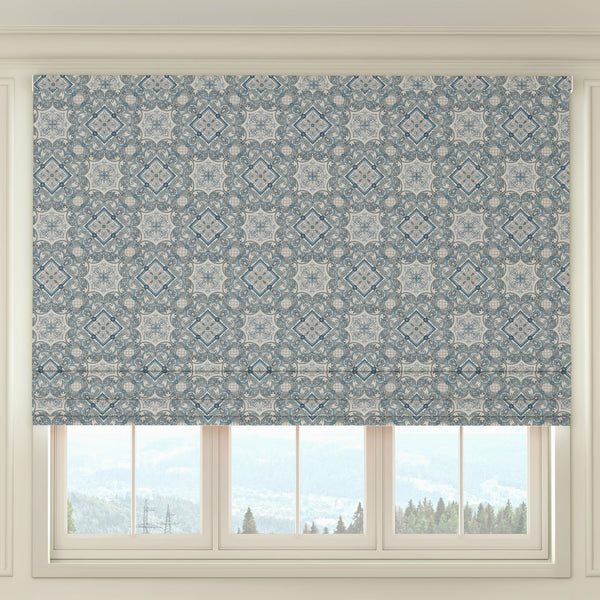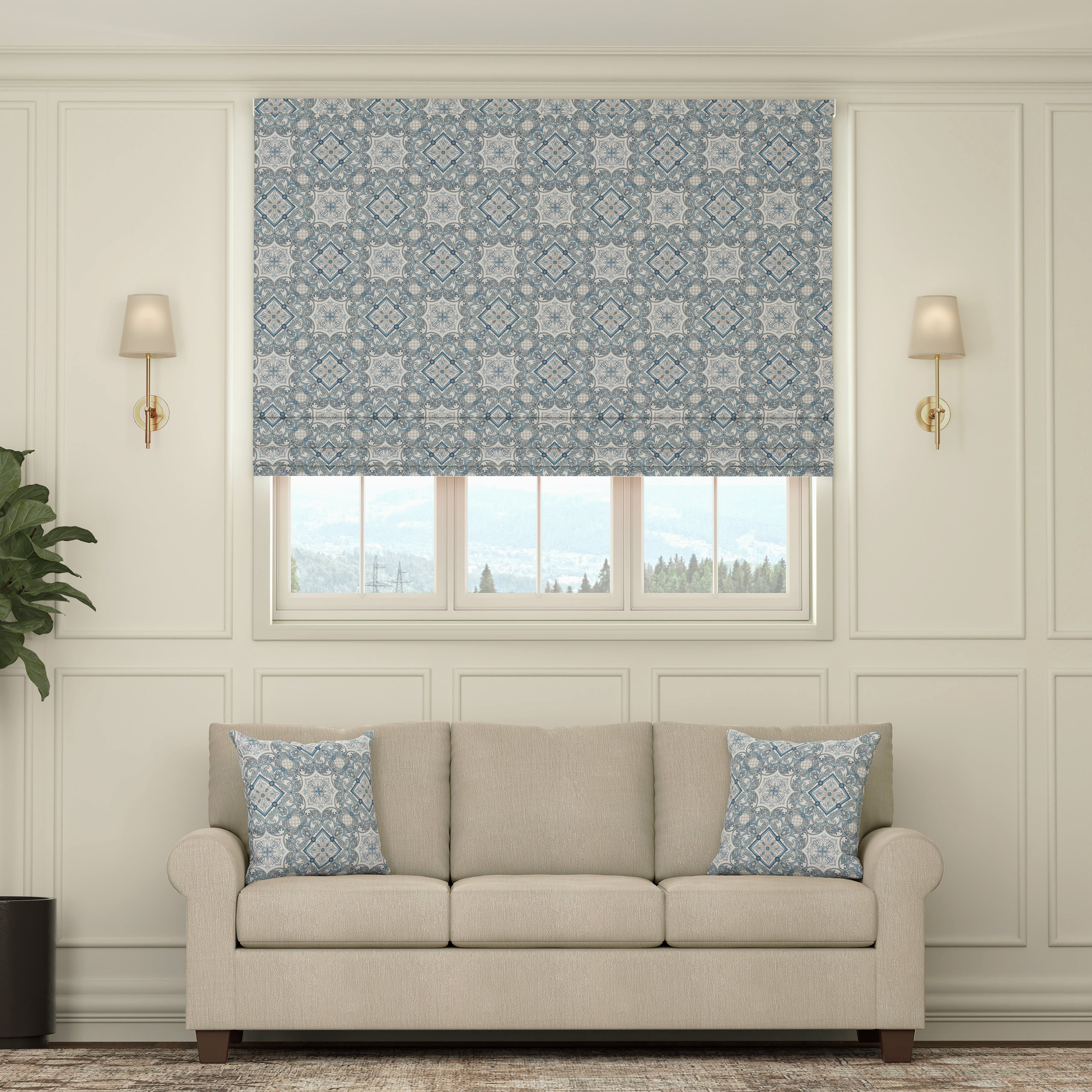 This made-to-measure Roman blind from the HOUSE Llewelyn-Bowen Festivo collection combines elegant geometric and floral motifs with expert craftsmanship. Made from 100% cotton, the blind features a tonal printed design in soothing blue shades, creating a calming ambiance in any room. Its precision tailoring ensures a perfect fit for your windows, while the durable cotton fabric balances softness with lasting quality. Ideal for adding a sophisticated yet tranquil aesthetic, this Roman blind is both functional and a refined decorative feature in your living space.