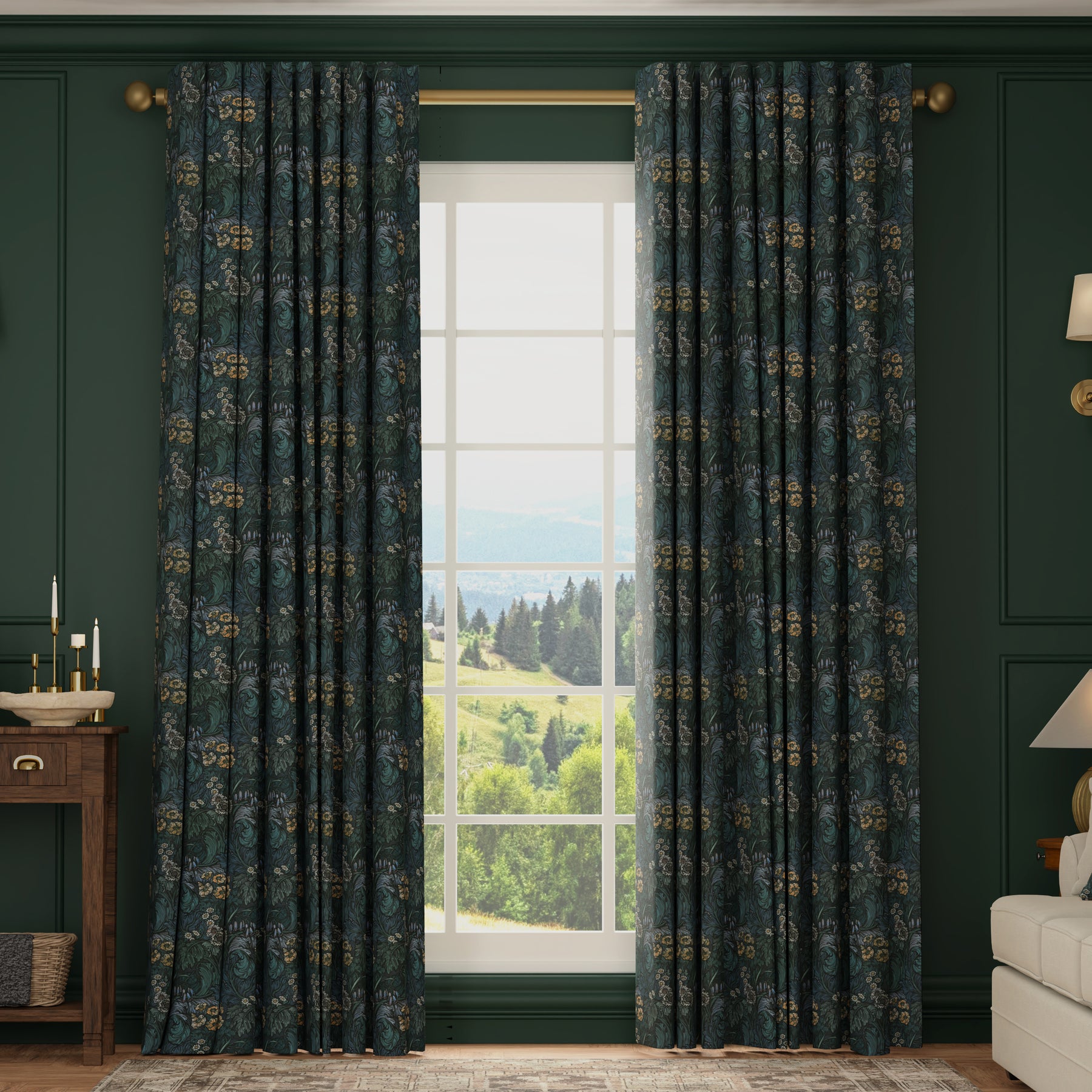 These made to measure curtains from the HOUSE Llewelyn-Bowen Hedgerovia collection combine elegant craftsmanship with a dense, leafy design that brings natural beauty into your home. The rich velvet fabric features subtle pops of hidden floral patterns and vibrant colours, adding depth and sophistication to any room. Custom tailored to your specifications, they offer perfect fit and stylish window dressing that enhances both privacy and room ambiance. Ideal for those seeking a blend of classic charm and contemporary flair, these curtains elevate interior spaces with quality and distinctive design.