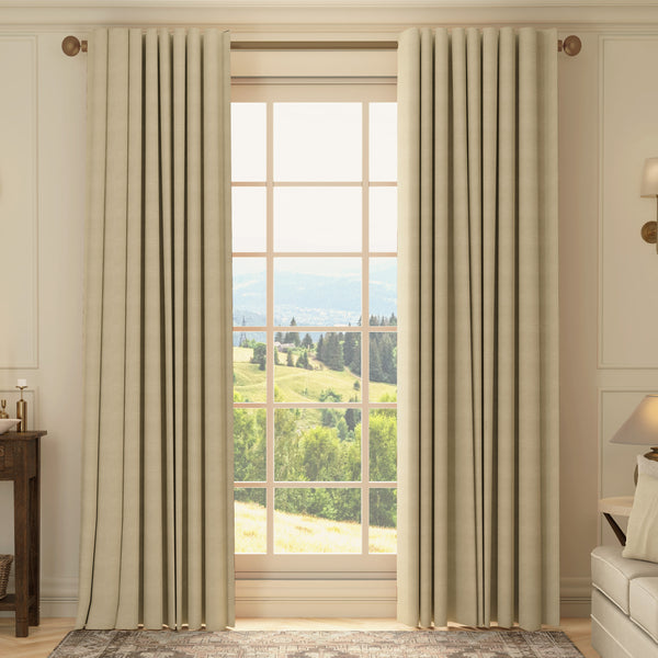 Elevate your living space with this pair of made to measure curtains from the House Llewelyn-Bowen collection, expertly crafted to fit your windows perfectly. These curtains feature a subtle textured luxe chenille fabric, providing a rich feel and gentle depth to your décor. The neutral beige colourway complements a broad range of interiors, offering timeless elegance and versatility. Designed for both style and functionality, these curtains enhance privacy while softly diffusing natural light, creating a warm, inviting atmosphere in any room. Perfect for those who appreciate refined design and quality craftsmanship.