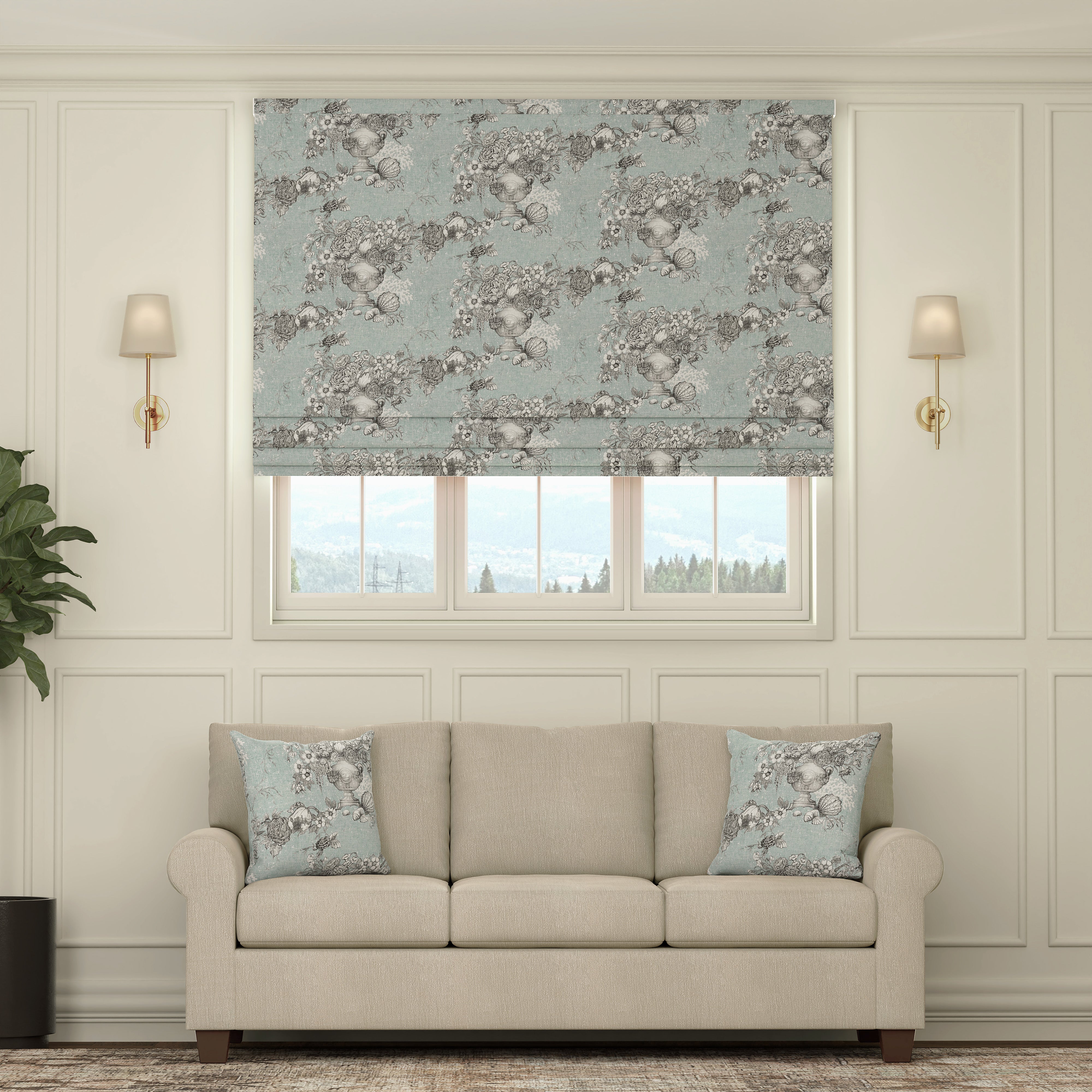 This made-to-measure Roman blind from the HOUSE Llewelyn-Bowen Vacannes collection features an elegant floral and urn pattern rendered in a sophisticated blend of colours. Crafted from 100% printed cotton, it offers a durable yet soft finish that enhances any room’s decor. Available in a selection of shades, the Opaline Moonstone version presents a cool, dusty blue tone that adds a timeless and refined touch to your interiors. Designed for precise fitting, this blind combines style and functionality, making it an excellent choice for those seeking bespoke window treatments with expert craftsmanship.