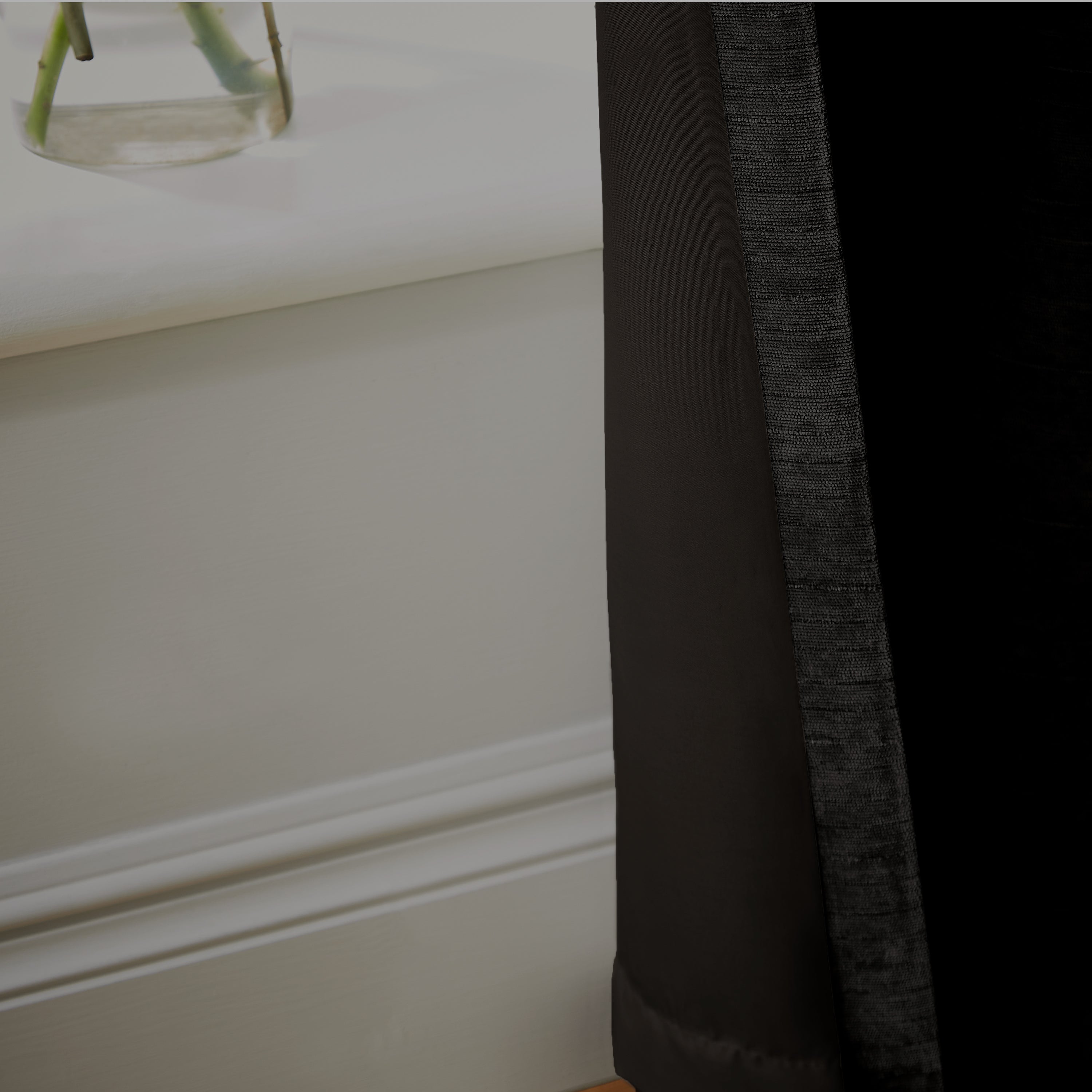 These sophisticated black eyelet curtains feature a sumptuous heavyweight chenille weave with reinforced corners that create an elegant, structured hang. The soft-touch lining is expertly dyed to complement the main fabric, whilst the substantial construction delivers exceptional durability, light-blocking properties, and thermal insulation benefits. Part of the HYPERION INTERIORS collection, these curtains represent a commitment to superior craftsmanship, combining premium materials with refined design to provide enduring luxury and practical performance for discerning interiors.
