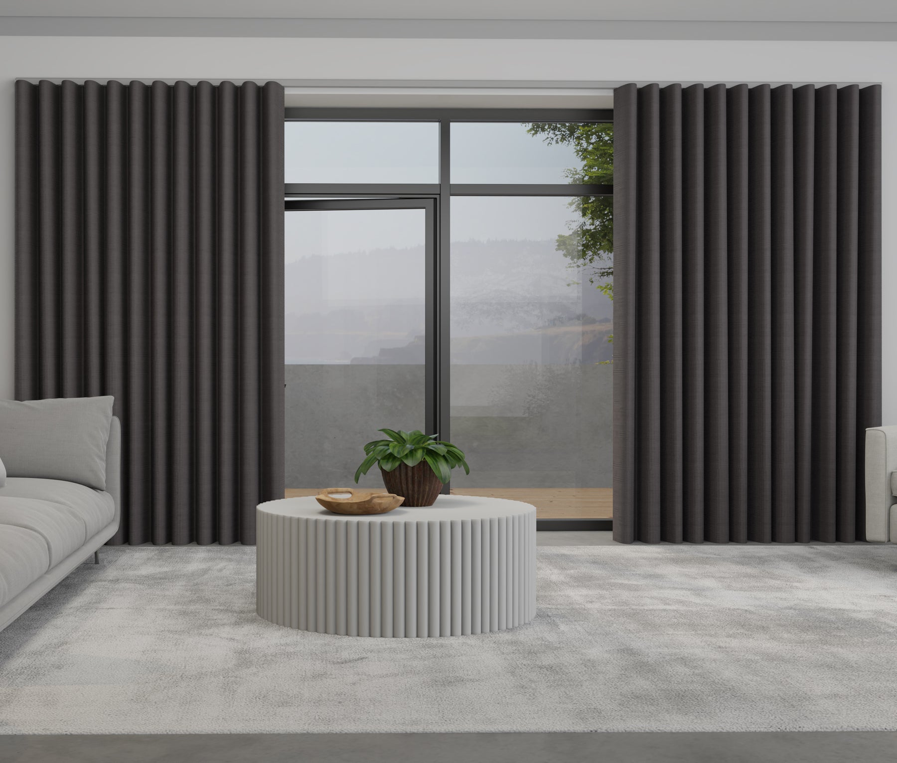 • Grey curtains