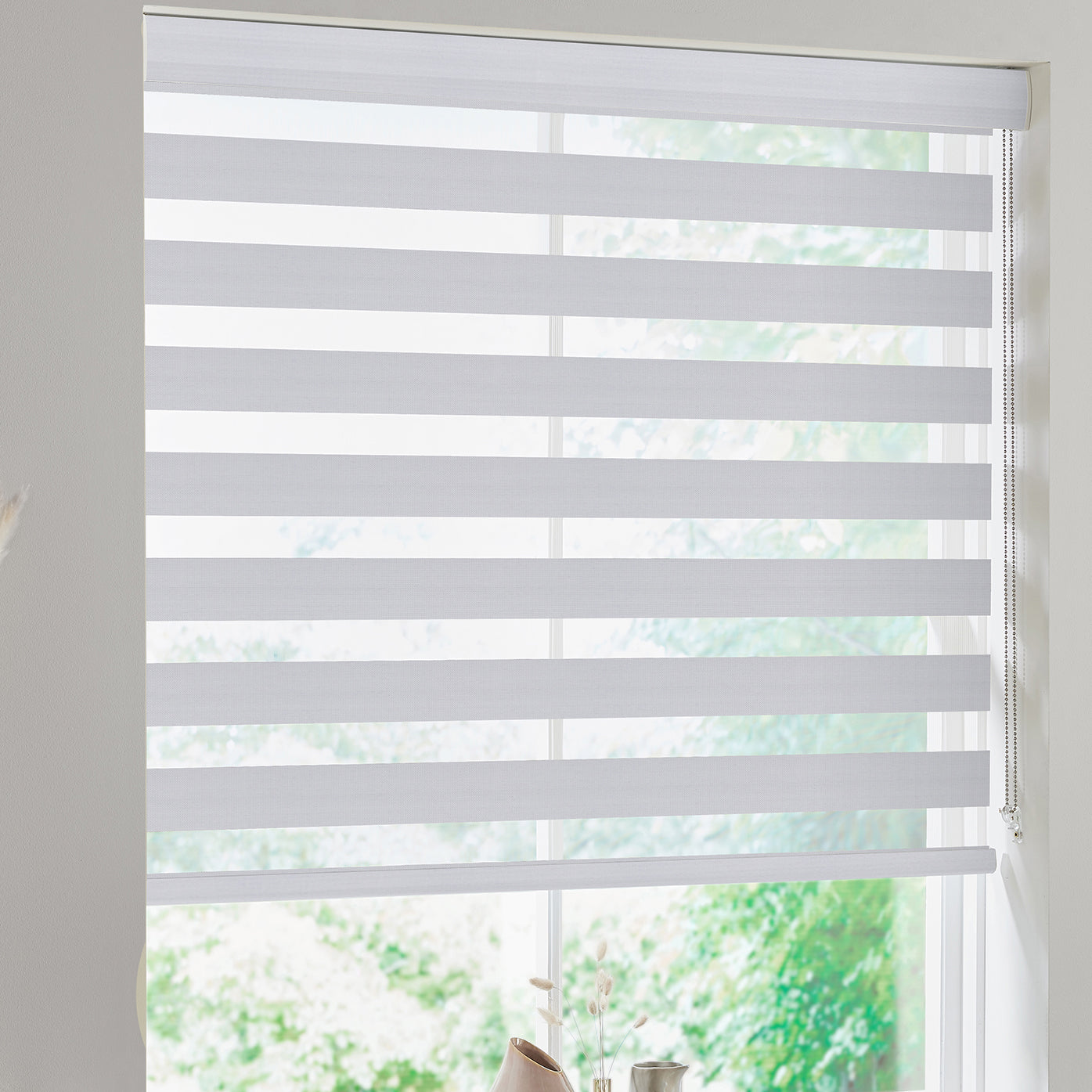 Experience full control of brightness with Lana Made To Measure Day Night Blinds White. Roll them up to enjoy maximum light or down to ensure total darkness. Opt for the stylish Evo cassette to keep the mechanism hidden and the blind folded.