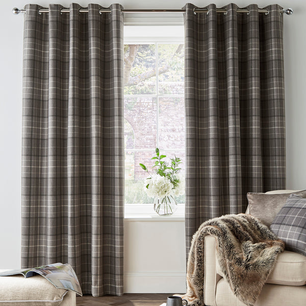 The beautiful Alfriston curtain is a warm and cosy large scale woven twill check in a timeless colour palette of pale charcoal. This stunning checked pattern has a charming, classic country feel to it and will make any room feel warm and welcoming. These curtains have a composition of 100% polyester.