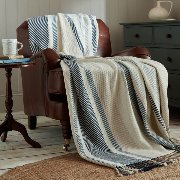 Laura Ashley Awning Stripe 150cm x 200cm Throw Seaspray Blue