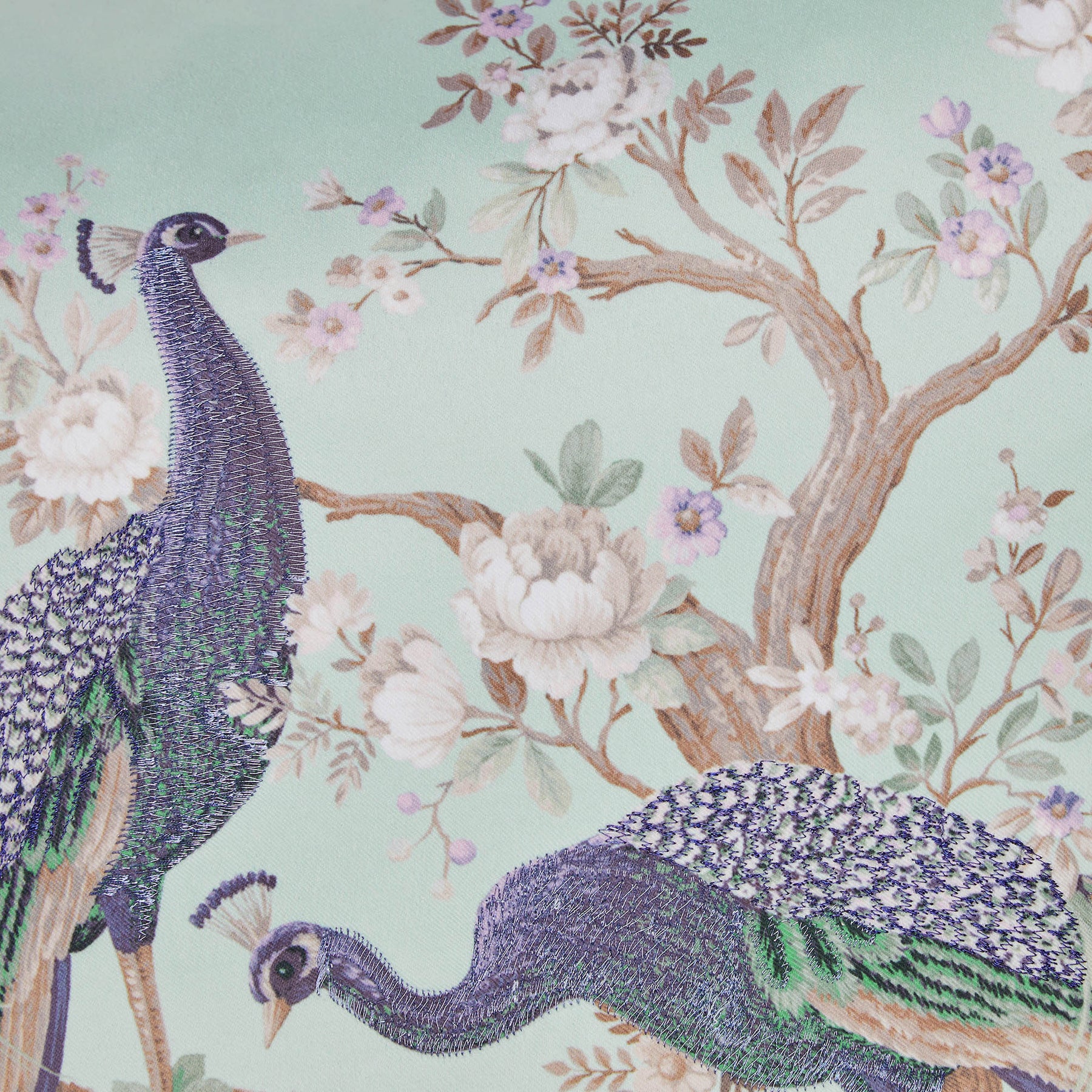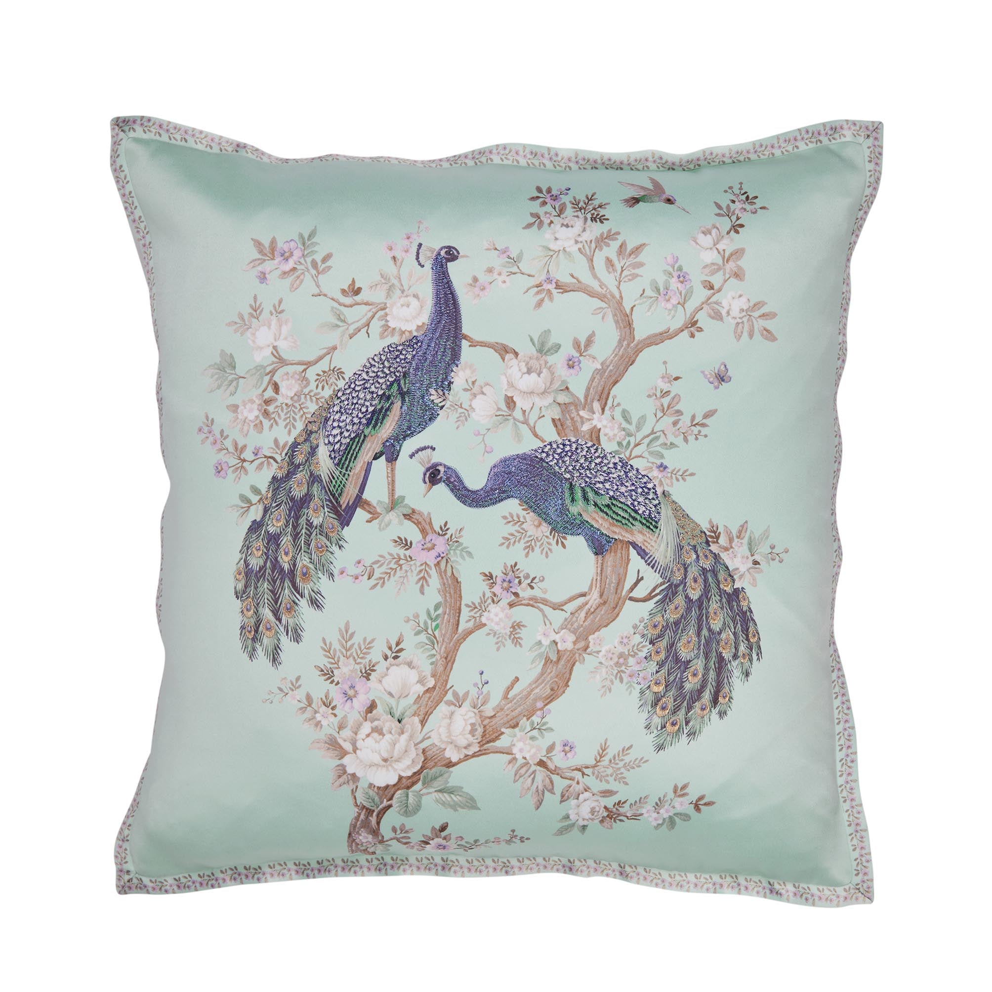 Presented in a delicate duck egg shade, the Belvedere cushion features the Laura Ashley Belvedere peacock design, expertly printed and embroidered. The elegant peacock tails intertwine with classic floral branches, adding a touch of traditional sophistication to your soft furnishings. This cushion includes a plush filled pad and is completed with a subtly patterned trim for a refined finish.
