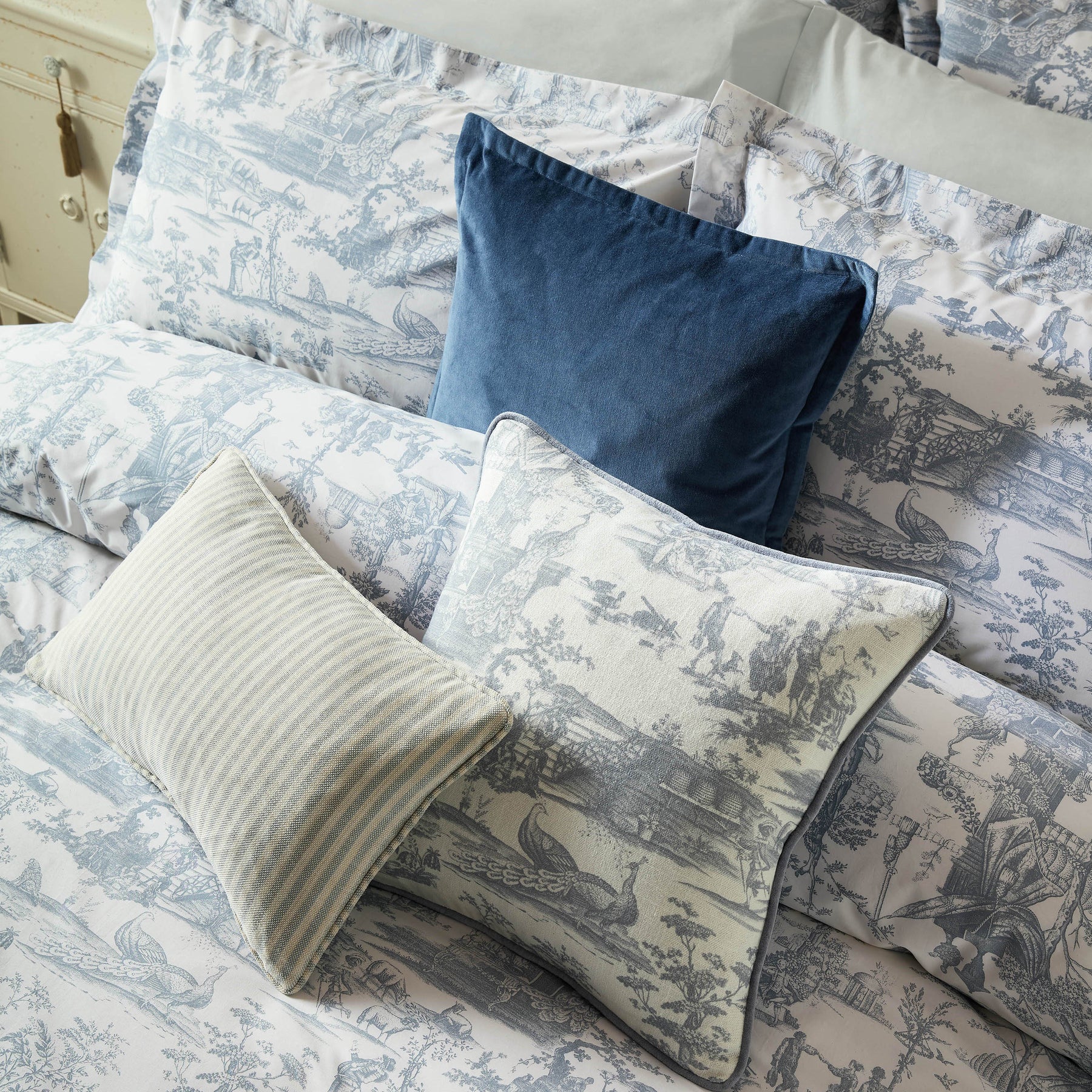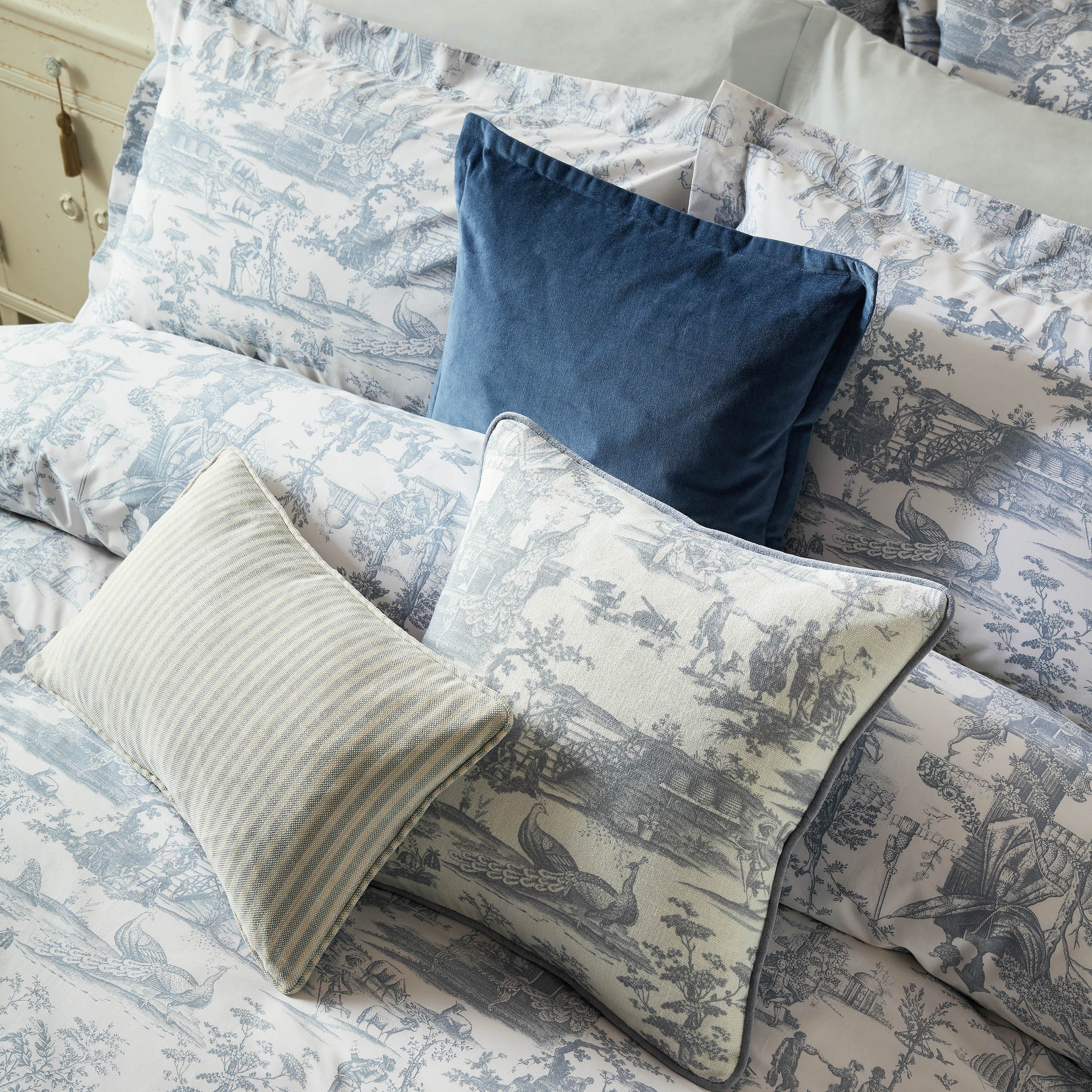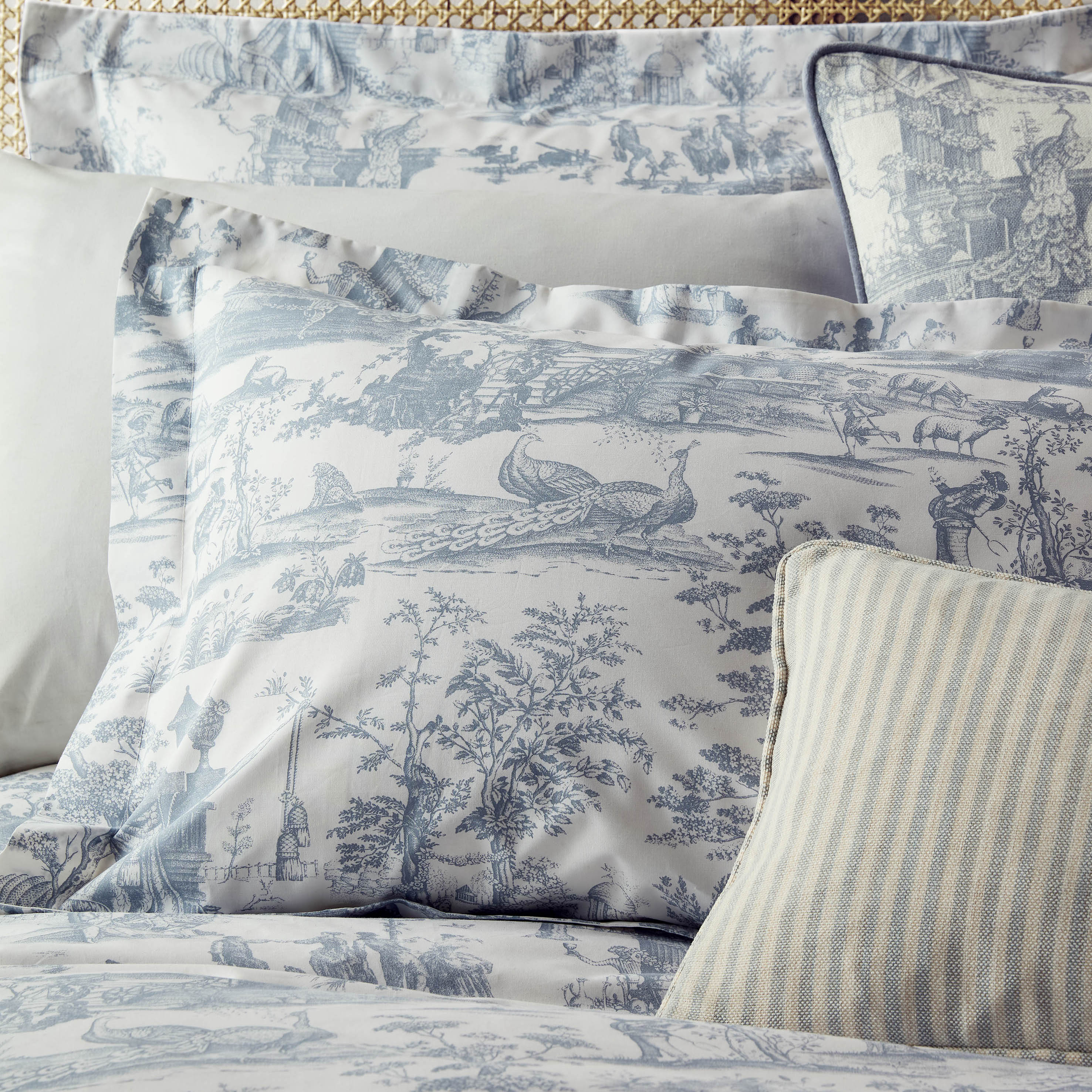 Inspired by various toiles from 1994 in the Laura Ashley archive, this typical late 18th century French landscape print depicts a beautiful country scene with people dancing and wandering peacocks and sheep. Printed onto a 100% 200TC Cotton Percale base. Available in sizes: single set, double set, king set and Super king set. Set includes duvet cover and 2 pillowcases (Includes 1 pillowcase with single set). Pillowcases are available to purchase separately.