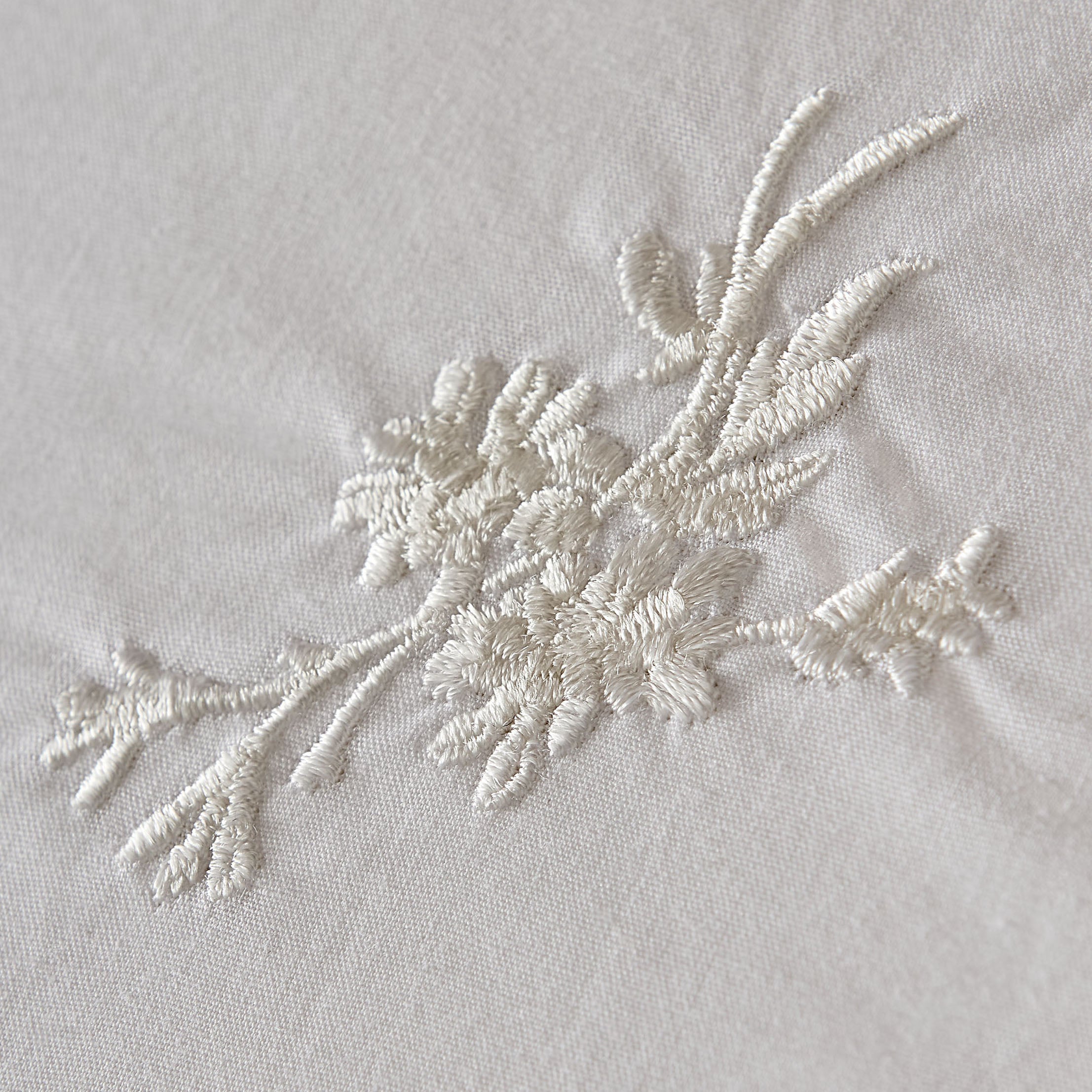 Subtle and romantic, the Keeleigh Posy embroidered bed set is a cottagecore-inspired design, featuring delicate sprays of stylised blooms and leaves. Embroidered in an elegant off-white shade onto a 200TC, 100% cotton base and complete with a delicate mock Oxford edge.