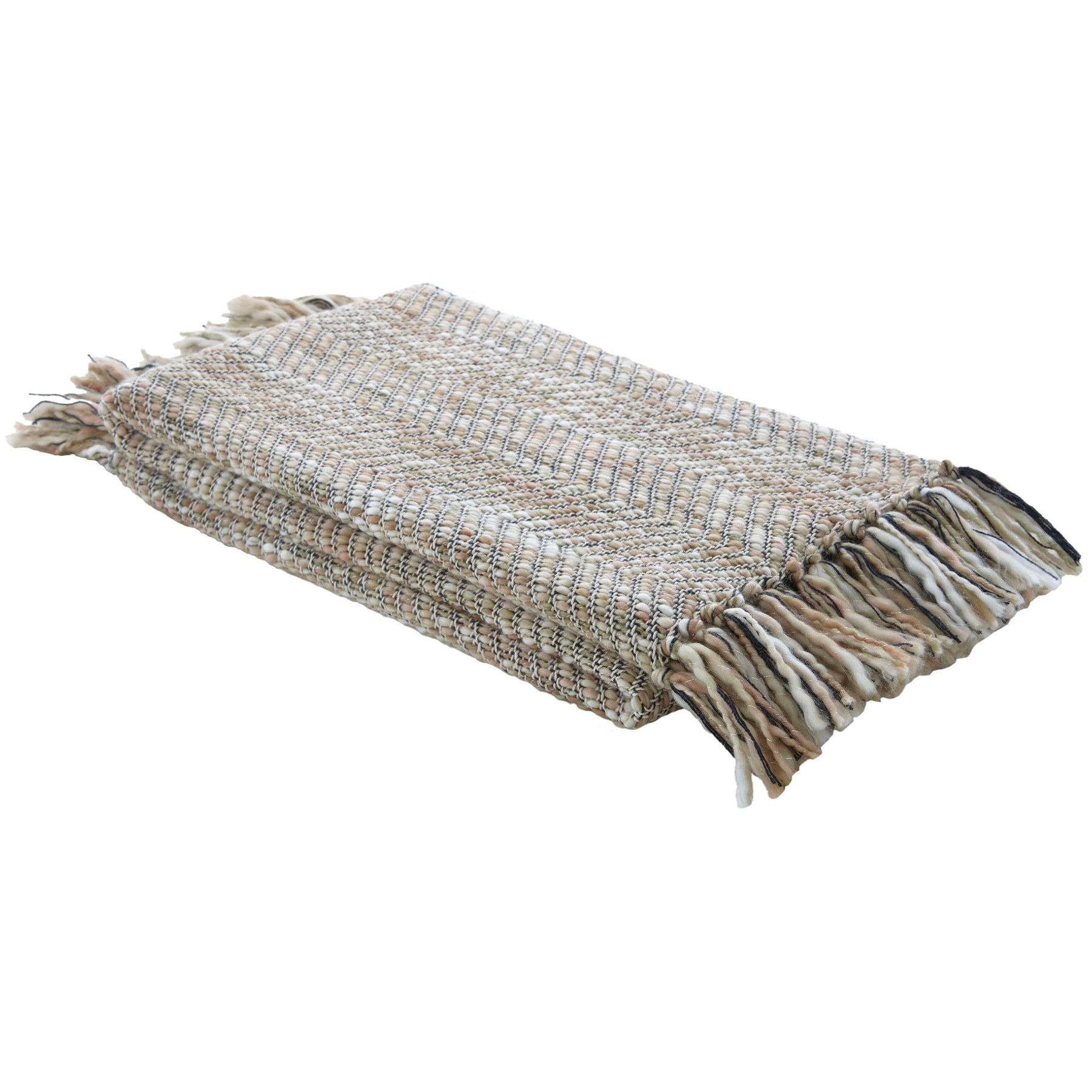 This luxurious throw combines soft tonal taupe's, natural shades, and cream, highlighted by a refined charcoal accent. Featuring subtle metallic yarn and gentle tonal fringes, it brings a polished and sophisticated touch to your home décor.