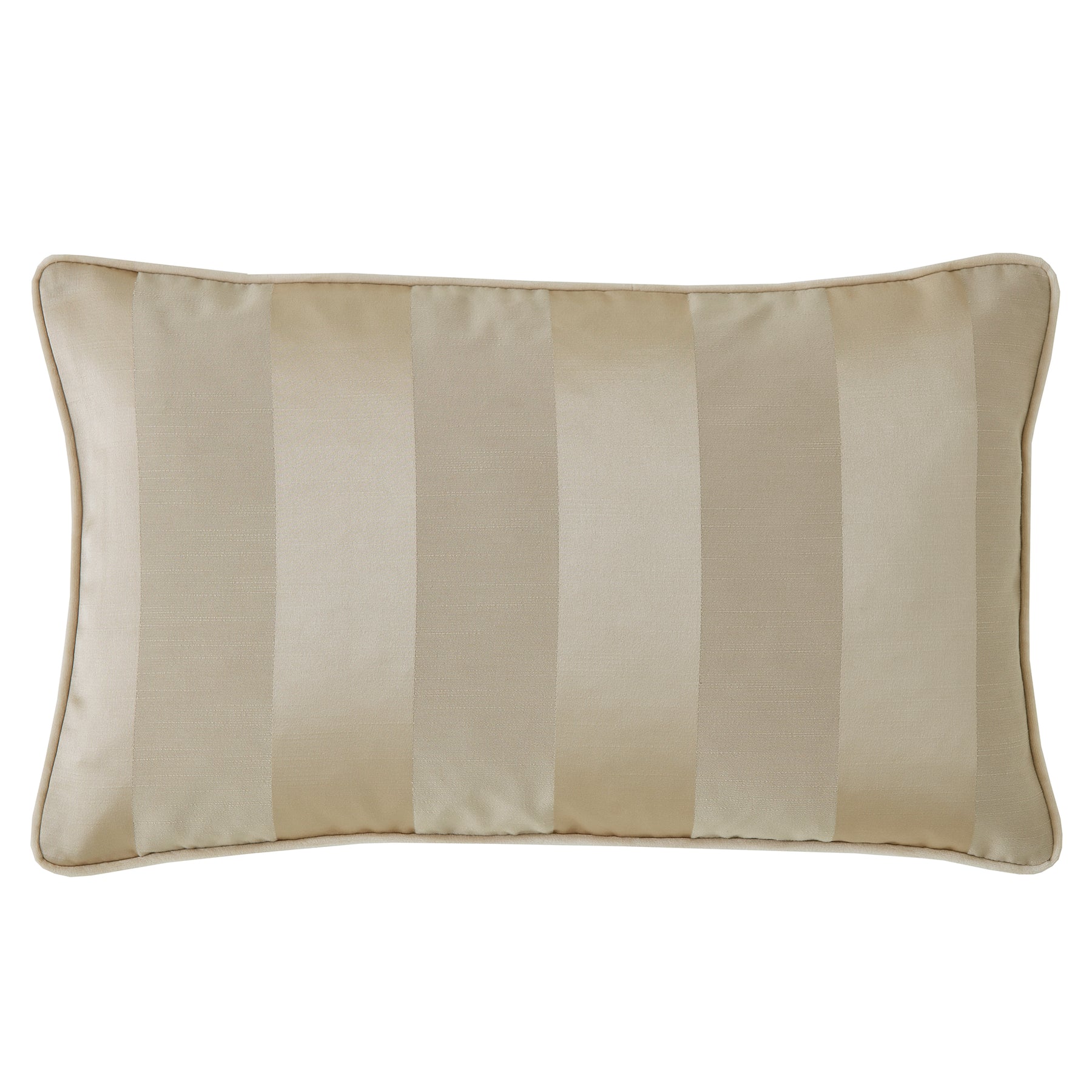 The Lille Stripe cushion showcases wide stripes in harmonious tonal shades, delivering an elegant yet understated aesthetic. It features a rich jacquard front paired with a soft velvet reverse, complemented by piped edging for a polished finish. Offered in a refined palette of Oyster or Truffle natural tones.