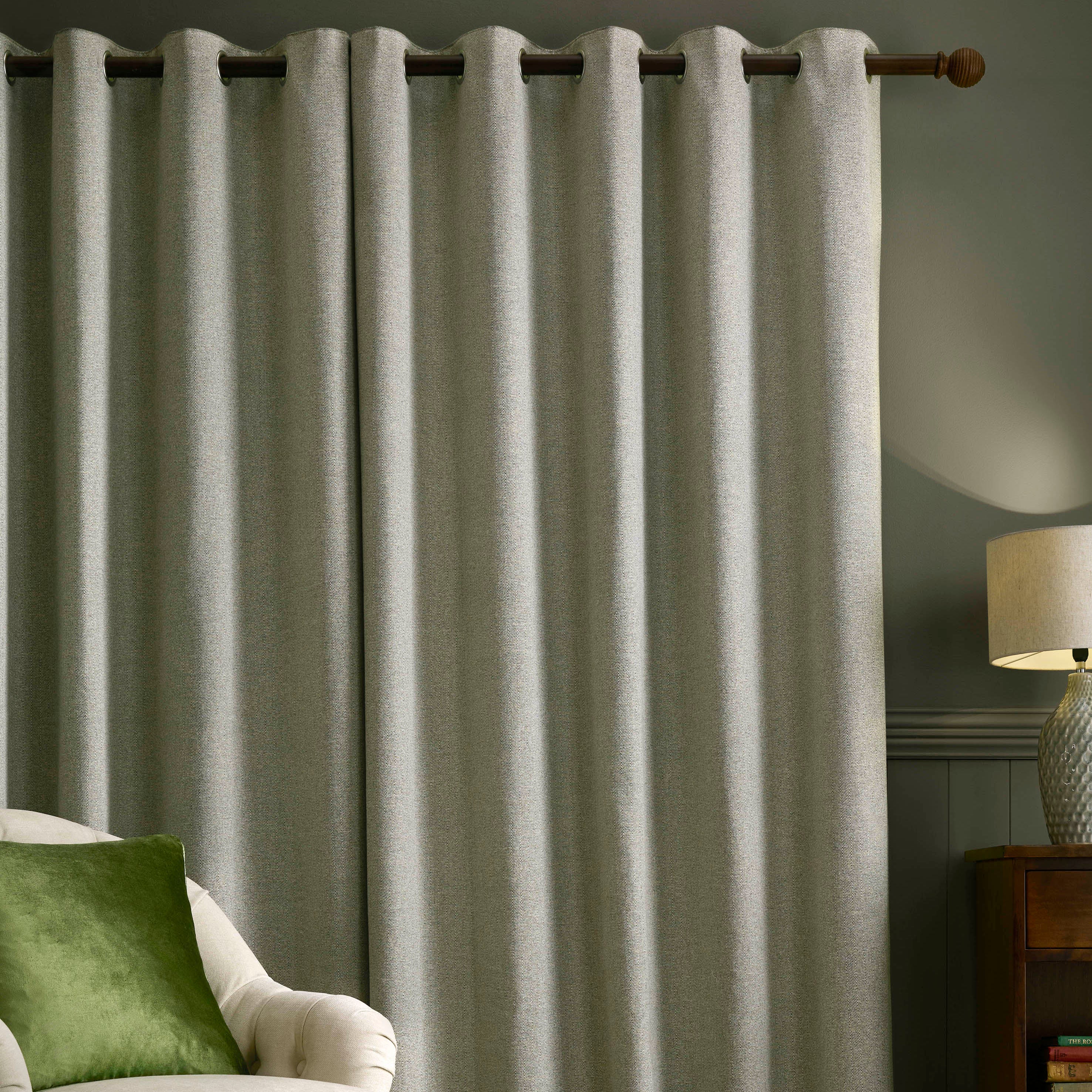 The Laura Ashley Milbourne herringbone lined eyelet curtain features a classic design woven in soft, natural tones that suit both modern and traditional interiors. Crafted to provide a warm and elegant touch, this curtain is made from a 50% cotton and 50% polyester lining blend, ensuring durability and a refined finish.