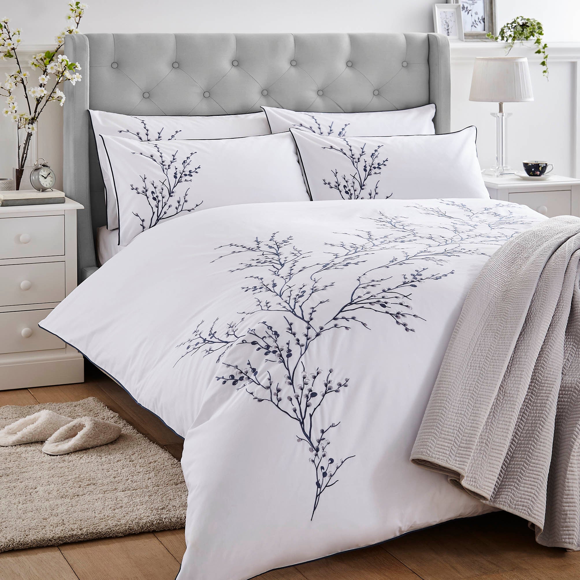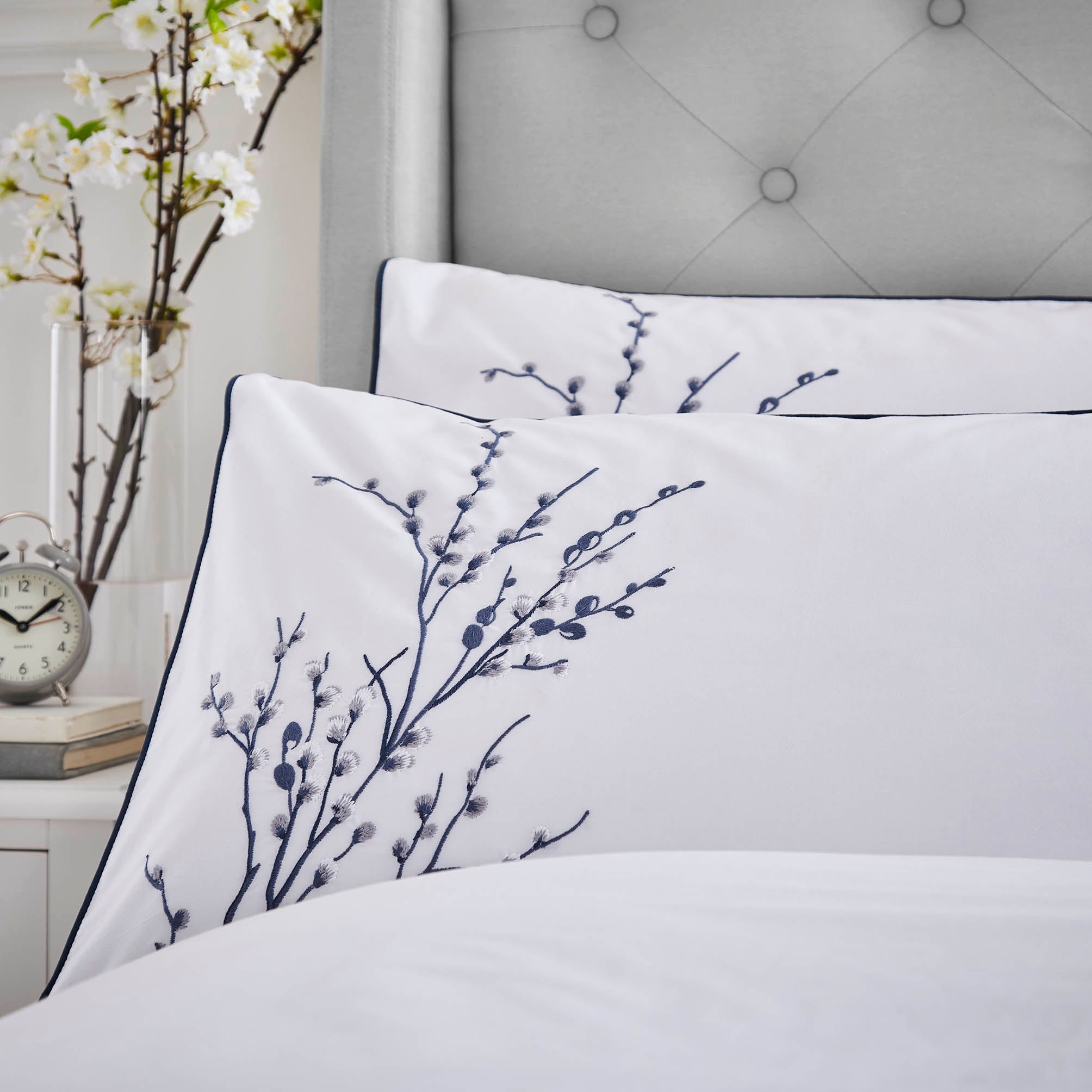 The renowned Laura Ashley Pussy Willow floral design offers a refined and fresh aesthetic for your living space. Crafted with a luxurious 200 thread count, this embroidered duvet cover features a sophisticated midnight blue color scheme, adding a contemporary edge to your bedroom. Available in single, double, king, and super king sizes, each set includes a duvet cover and two pillowcases (one pillowcase with the single set).