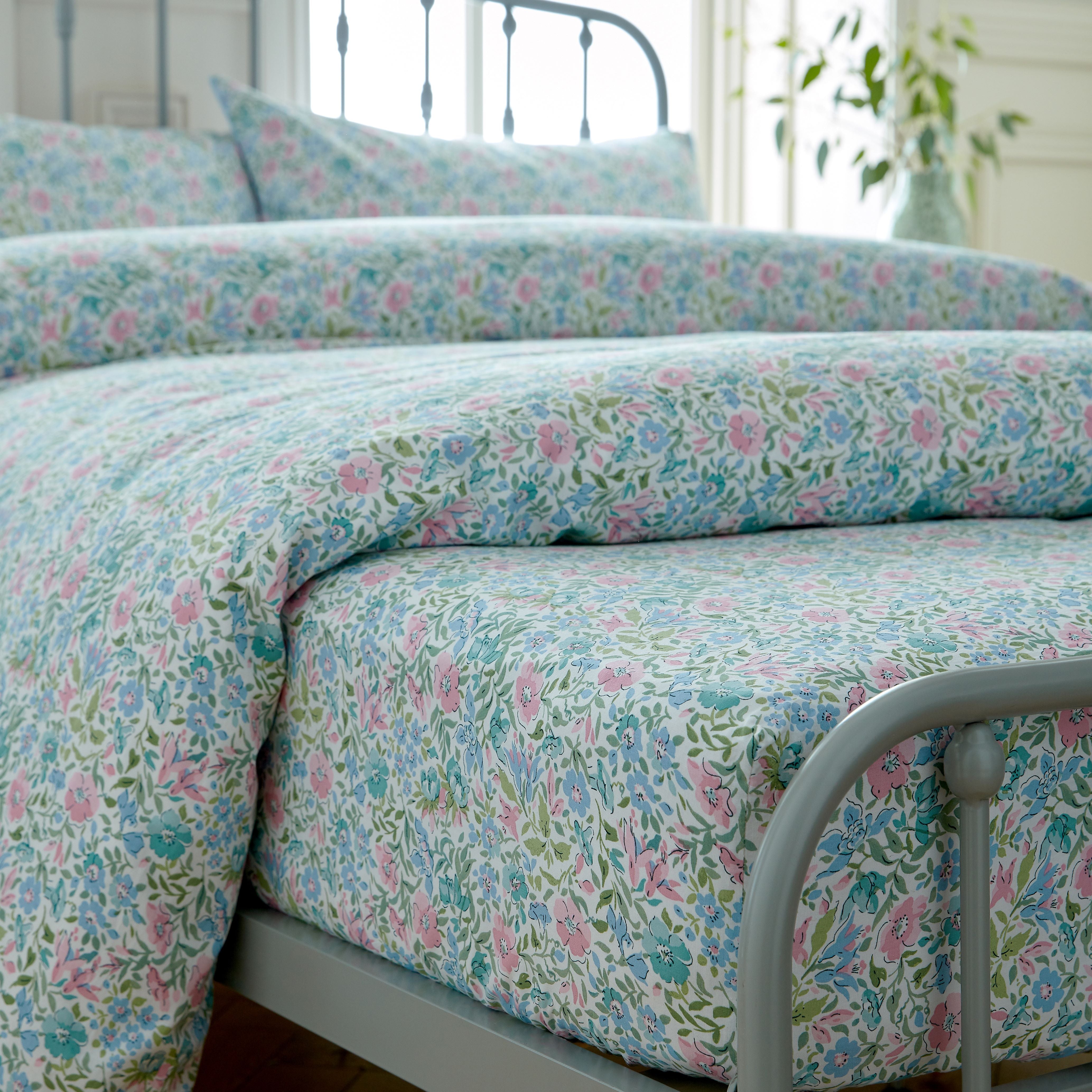 Laura Ashley Sherston Floral Bed Linen Fitted Sheet Powder Blue Laura Ashley Sherston Floral Bed Linen Fitted Sheet Powder Blue