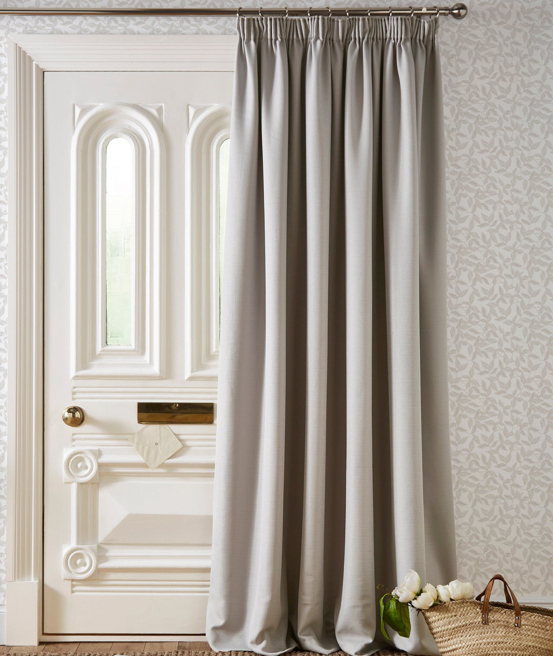 Enhance your home instantly with the Laura Ashley Stephanie 66 x 84 Ready Made Pencil Pleat Door Curtain Dove Grey. The thermal lining efficiently blocks out drafts and light, while the classic design and pencil pleat header ensure warmth during winter and coolness in summer.