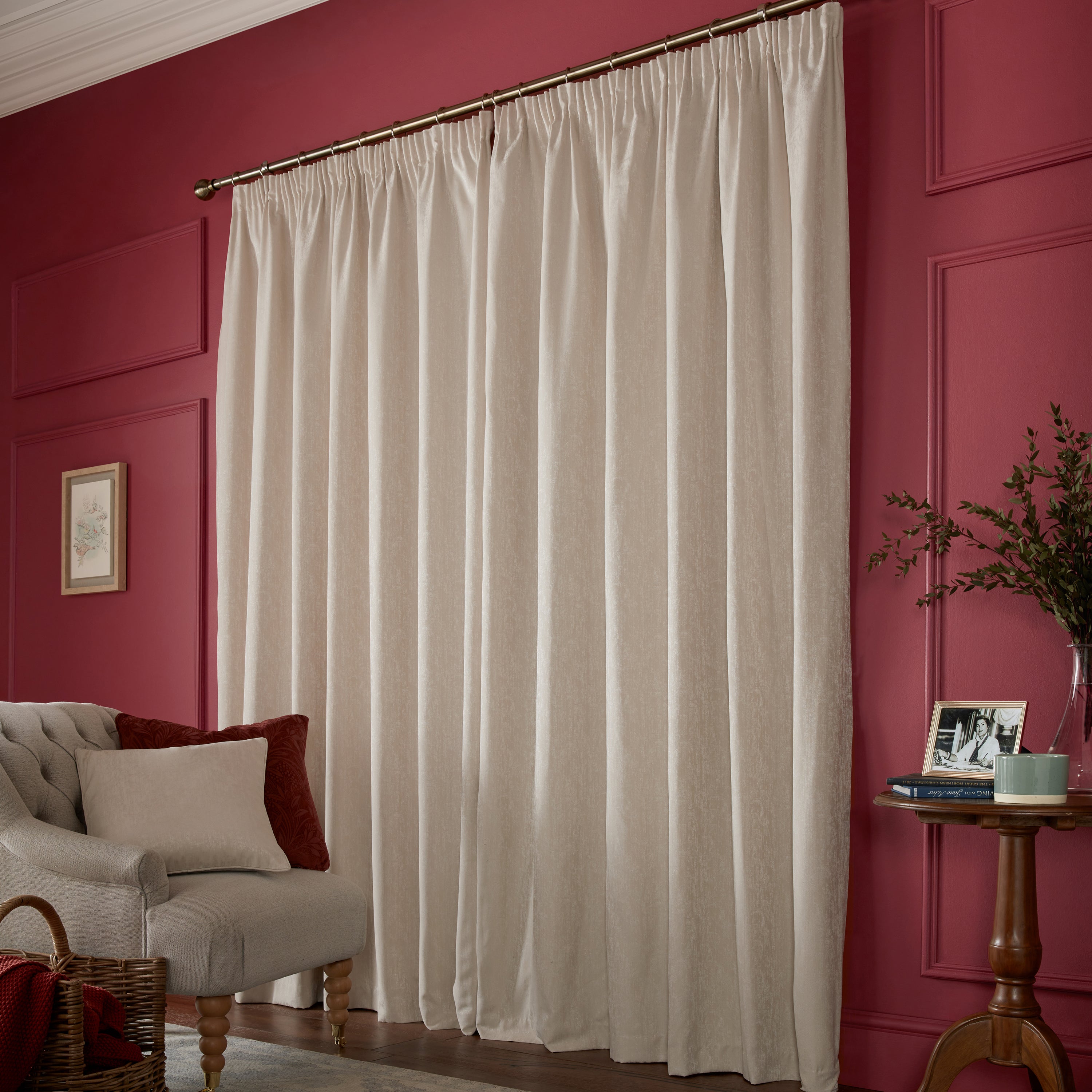 Add a touch of elegance to your space with this beautiful, sophisticated jacquard curtain that features a timeless woven texture. The luxurious sheen and smart pencil pleat header come in a Natural palette, making it a perfect addition to any room.