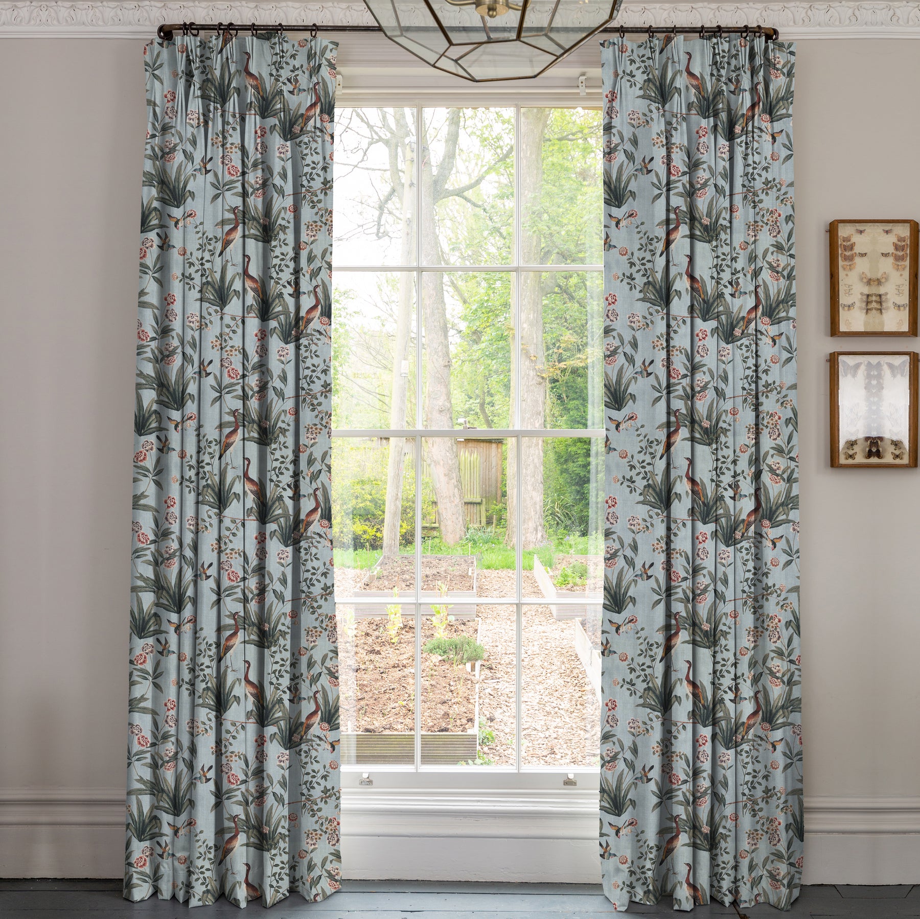 The Linda Barker Rosa Fiore fabric combines blackout efficiency with a sophisticated linen-look texture, delivering both practicality and elegance. Part of the Linda Barker Floral Garden range, this refined design features intricate bird and botanical patterns set against lush greenery. Offered as custom-made curtains tailored to your specifications, this premium fabric is an excellent choice to enhance your interior décor.