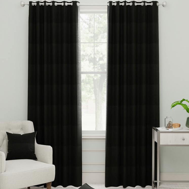 Eyelet Heading - Eyelet headings can only be used with curtain poles, and there is a choice of eyelet colours available to help you match the curtains to your room. Eyelet curtains take up very little room each side of the window, and this allows the maximum amount of light through your window. You also need slightly less fullness in eyelet curtains so they work very well for smaller windows. However, its best to avoid vertical striped patterns as they can look a little strange when opened.