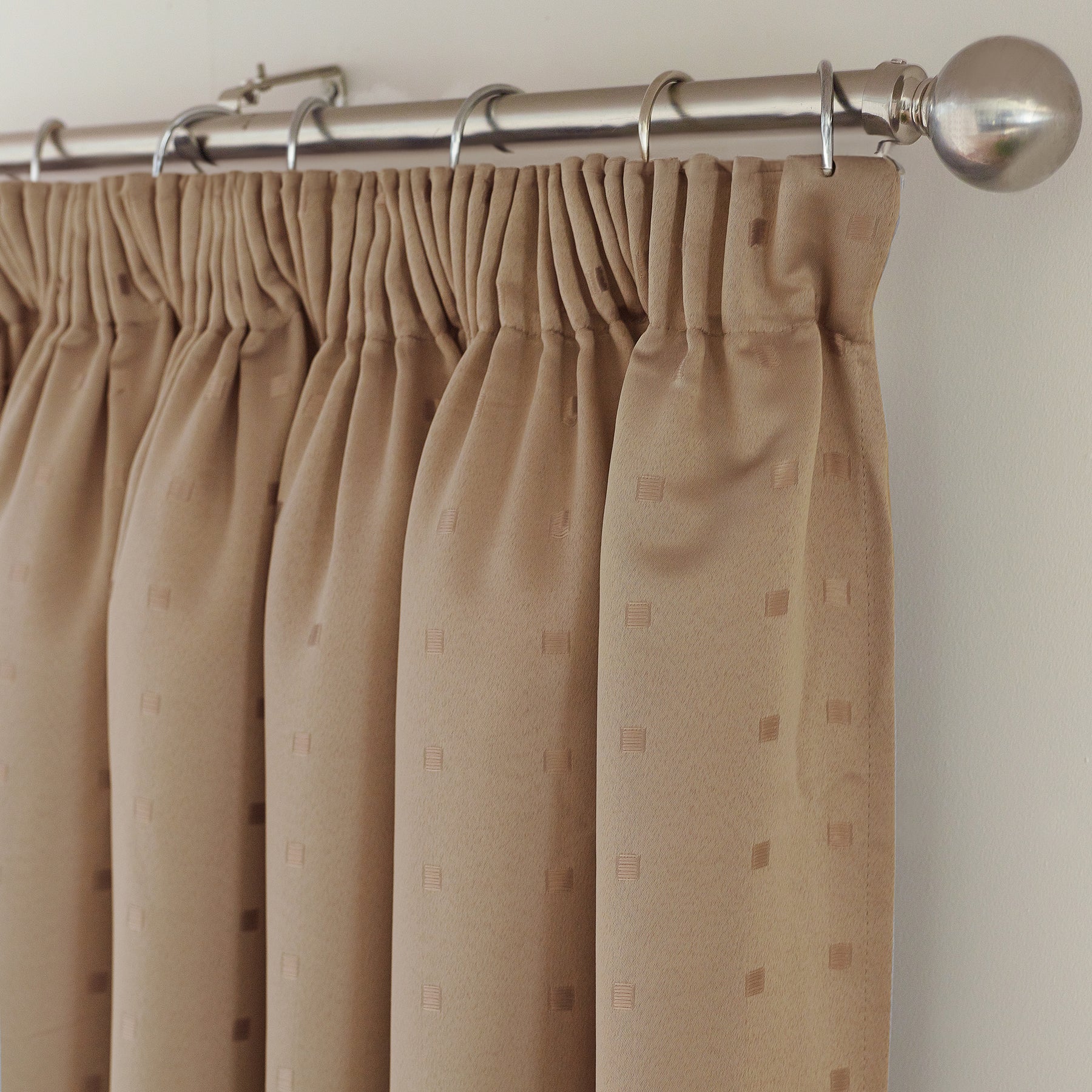 The stylish small square pattern of the curtains adds flair and individuality to any room. They come in a neutral hue to match any decor, blending in with traditional or modern spaces. With a pencil pleat heading, they are easy to hang and adjust to fit any window size. Plus, these curtains offer a light-filtering effect for an inviting and cosy atmosphere. For added convenience, they are machine washable, so you won't need to have them professionally cleaned.