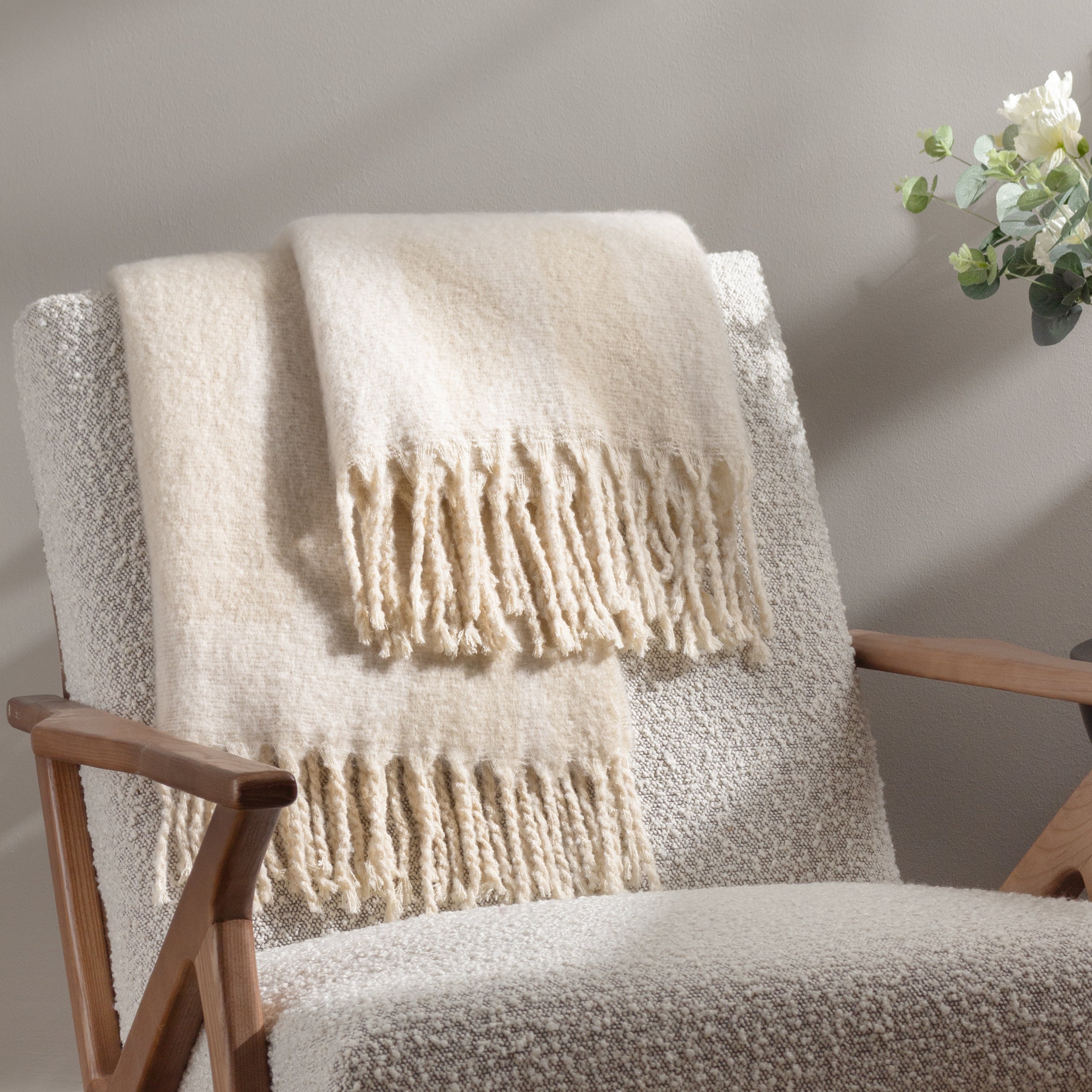Incorporating contemporary and simplistic design elements, the Meta throw showcases several fluid abstract jacquard patterns against an incredibly cosy faux mohair material. Adorned with twisted tassel borders on both ends, this piece adds a stylish touch to any muted home décor.