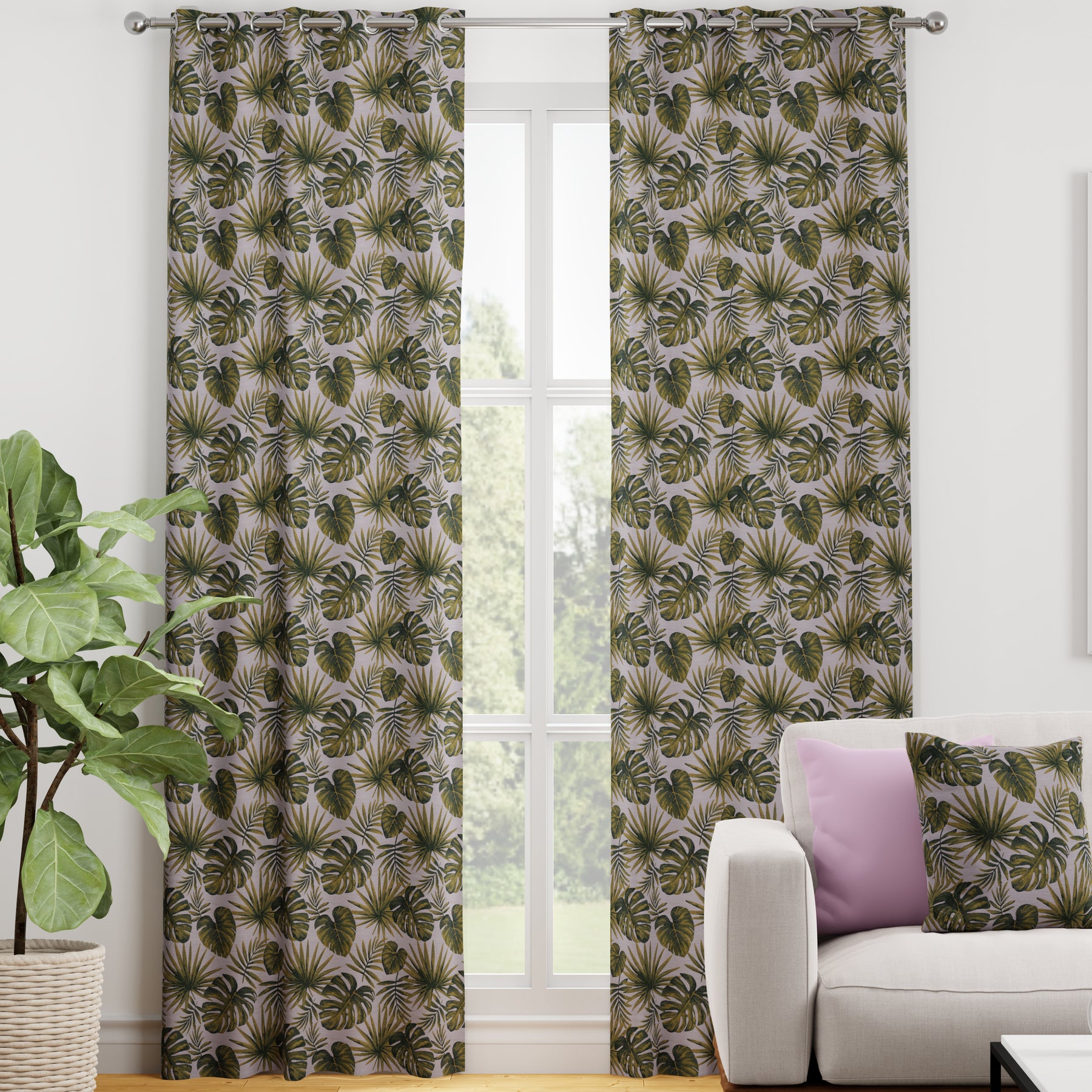 Infuse designer style into your home with our Monstera Made to Measure Curtains Green, featuring a tranquil 100% polyester design with lush tropical leaves on a neutral background, blending calming greens and hues for a trendy and soothing look.