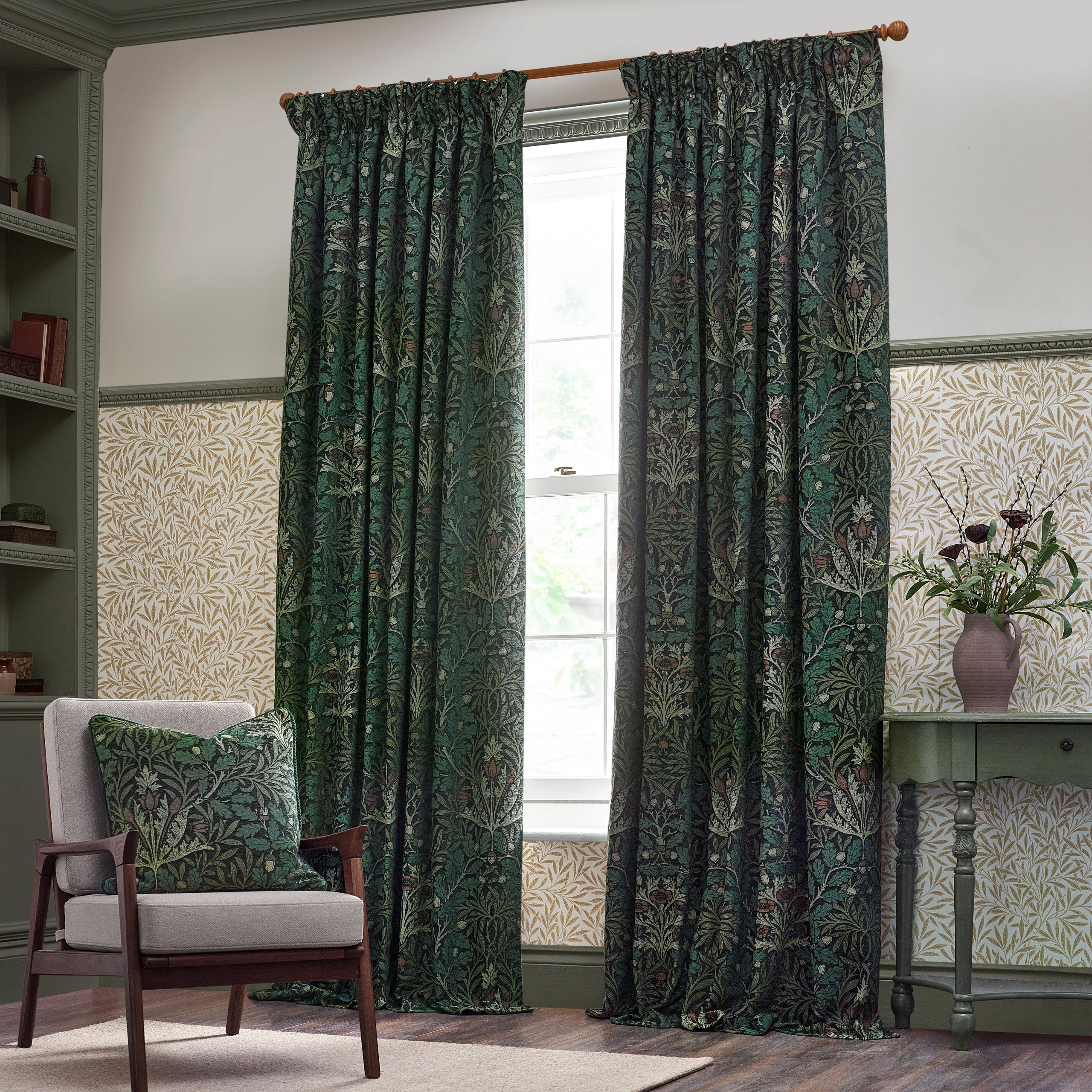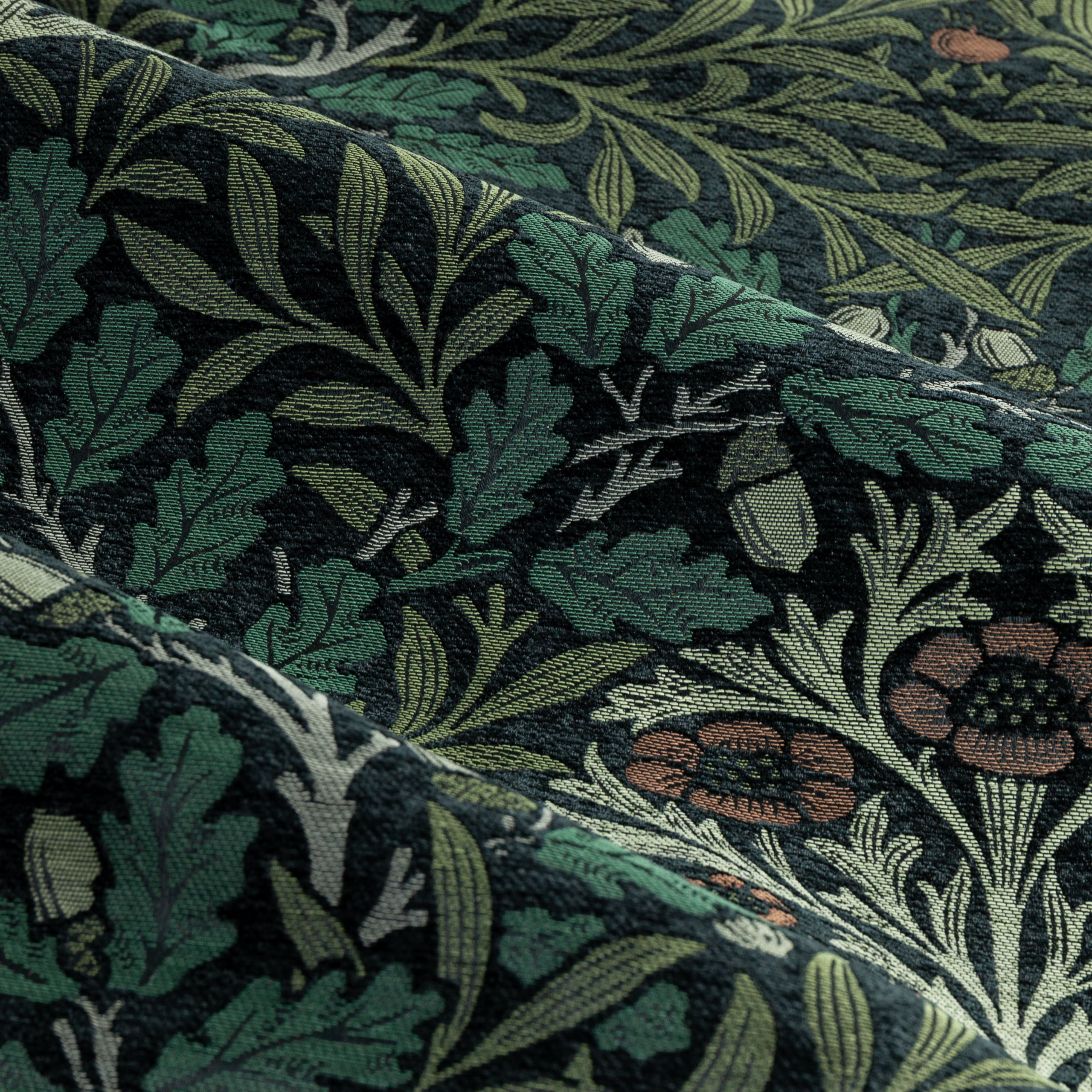 This stunning depiction of acorn branches was first created in 1879 using the authentic wooden printing blocks from Morris & Co. Evoking the feel of an English hedgerow, Acorn is reborn as a multi-colored jacquard fabric with high-quality Chenille material.